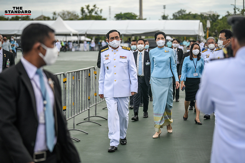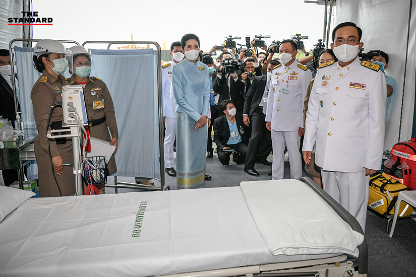 ก่อนเดินทางกลับ นายกรัฐมนตรี พร้อมด้วย จุรินทร์ ลักษณวิศิษฏ์ รองนายกรัฐมนตรี และรัฐมนตรีว่าการกระทรวงพาณิชย์, อนุทิน ชาญวีรกูล รองนายกรัฐมนตรี และรัฐมนตรีว่าการกระทรวงสาธารณสุข, สาธิต ปิตุเตชะ รัฐมนตรีช่วยว่าการกระทรวงสาธารณสุข ได้เยี่ยมการปฏิบัติงานของหน่วยแพทย์พระราชทาน กรมแพทย์หลวง และกองแพทย์ราชสำนักและแพทย์ประจำพระองค์ ร่วมกับกรมแพทย์ทหารบก กรมแพทย์ทหารเรือ และกรมแพทย์ทหารอากาศ พร้อมให้กำลังใจแพทย์ พยาบาล และเจ้าหน้าที่ปฏิบัติงานที่สนามหลวงด้วย