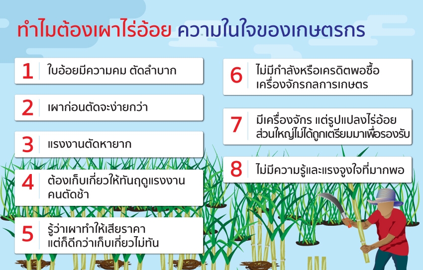 ทำไมถึงต้องเผา? หลายคนไม่เข้าใจและตั้งคำถามนี้กับเกษตรกร ซึ่งจริงๆ แล้วหากจะหาคำอธิบายให้ชัดเจน คงต้องมองลึกลงไปถึงแรงจูงใจเพื่อทำความเข้าใจเรื่องนี้อย่างแท้จริง