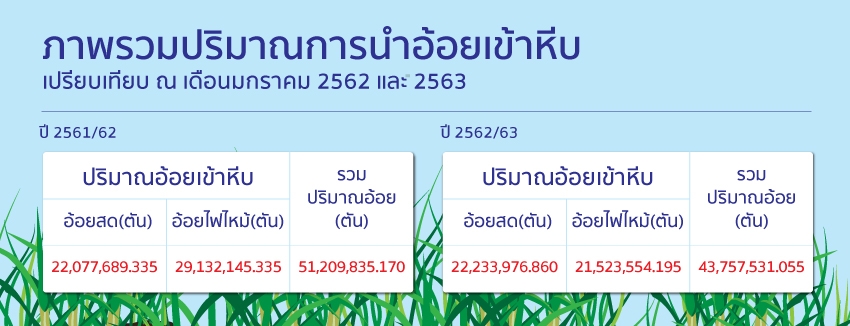 ในปี 2561/2562 รับซื้อใบอ้อยเพิ่มขึ้นเป็นจำนวน 138,162 ตัน