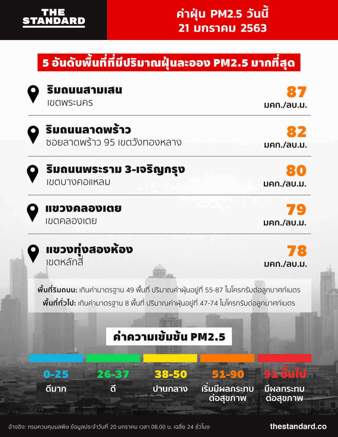 ค่าฝุ่น PM2.5 วันนี้ (21 มกราคม 2563)