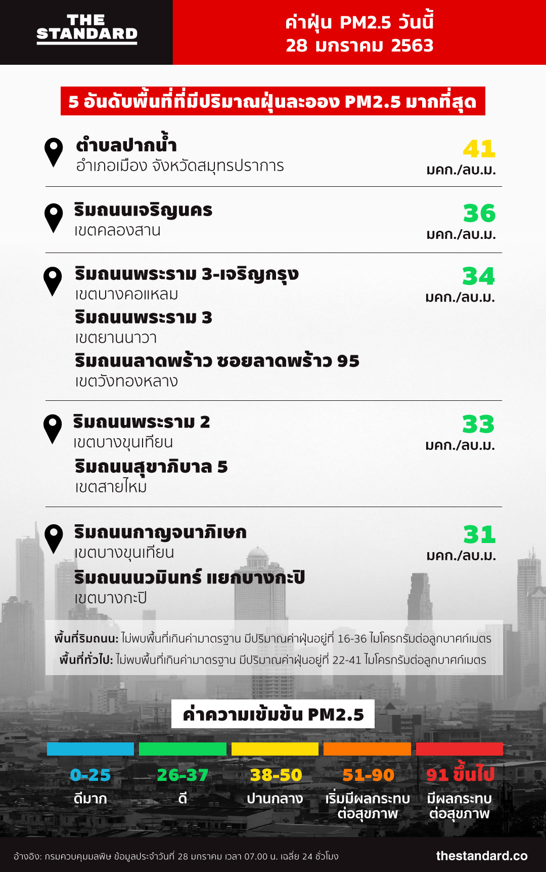 อย่างไรก็ตาม แม้ตอนนี้มลพิษทางอากาศจะอยู่ในเกณฑ์ที่ดี แต่ภาพรวมพบว่าฝุ่นยังไม่หายไปจากน่านฟ้าเมืองกรุงแบบหมดสิ้น ดังนั้นทุกครั้งที่ต้องออกไปทำธุระหรือกิจกรรมกลางแจ้ง ประชาชนควรสวมหน้ากากอนามัยไว้เสมอเพื่อป้องกันฝุ่นในเบื้องต้น