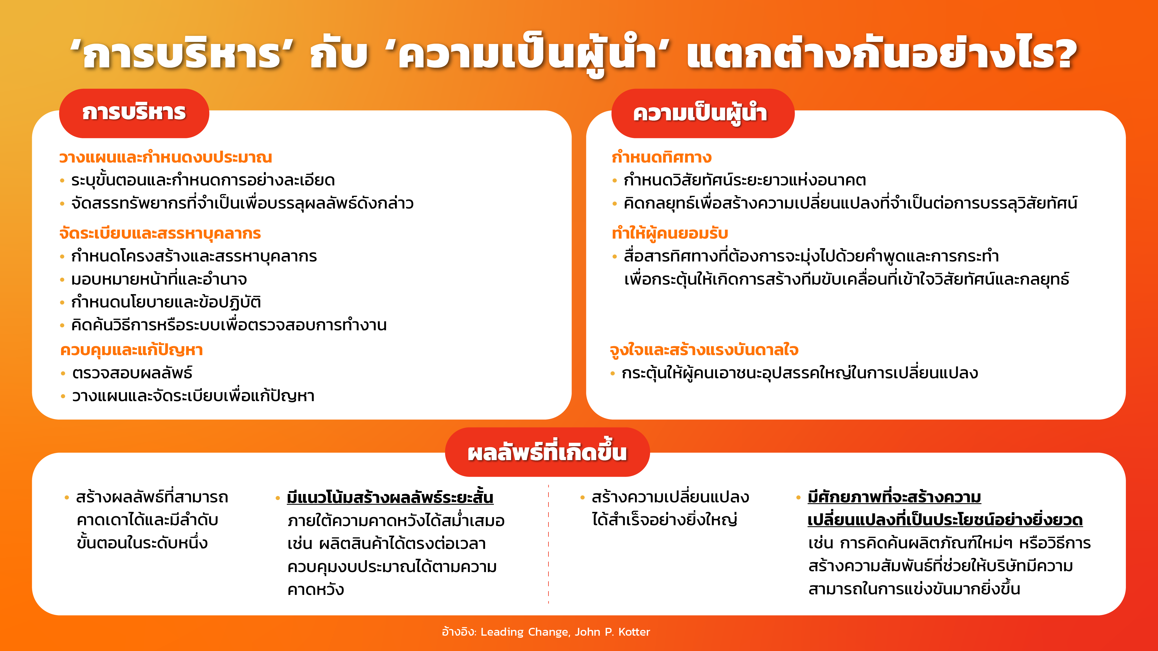 ช่วงท้ายปีแบบนี้ องค์กรจำนวนมาก คนส่วนใหญ่ ต่างก็มองหาวิธีการในการพัฒนาตัวเอง ยกระดับทักษะ สกิล ความสามารถ หรือมายด์เซ็ตของบุคลากร แต่ปัญหาสำคัญก็คือ ‘การเปลี่ยนแปลง’ เรื่องใดสักเรื่องไม่เคยเป็นเรื่องที่ง่ายเลย แล้วจะทำอย่างไรให้เราเริ่มต้นขั้นตอนสร้างความเปลี่ยนแปลงได้ก่อนจะตกขบวนในวันที่สายเกินไป หาคำตอบได้จากแบบทดสอบชุดนี้พร้อมเนื้อหาเต็มๆ ใน The Secret Sauce EP.481 8 ขั้นตอนสร้างการเปลี่ยนแปลงสำหรับคนไม่ยอมเปลี่ยน ได้ที่ “8 ขั้นตอนสร้างการเปลี่ยนแปลง สำหรับคนที่ไม่ยอมเปลี่ยน | The Secret Sauce EP.481″