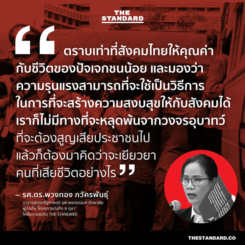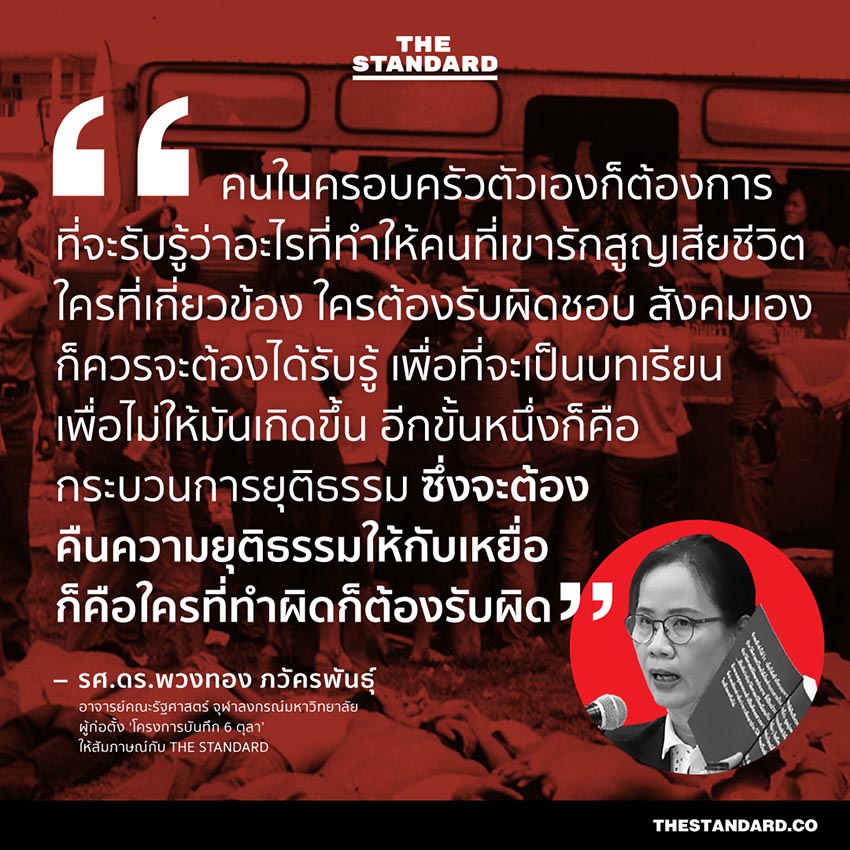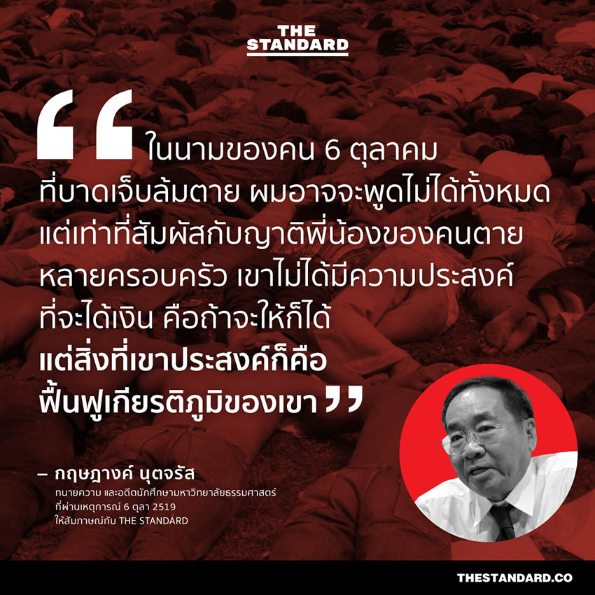 คลิกอ่าน: 6 ตุลา และ 14 ตุลา: โศกนาฏกรรมปราบปรามล้อมฆ่าประชาชน กับคำถามถึงการเยียวยาผู้สูญเสีย