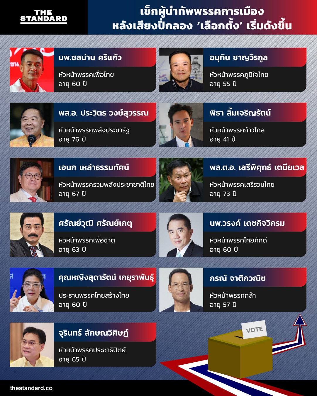 THE STANDARD เปิดผู้นำทัพพรรคการเมืองที่เริ่มมีความเคลื่อนไหว มีทั้งคนเดิม-คนใหม่