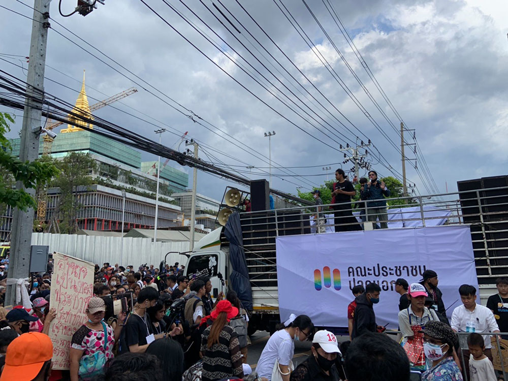 โดยหลังจากกิจกรรมเริ่มมาประมาณ 20 นาที ขณะนี้กลุ่มผู้ชุมนุมได้นำรถเครื่องเสียงมาปิดถนนสามเสน บริเวณหน้าอาคารรัฐสภา เกียกกาย ซึ่งขณะนี้ก็เริ่มมีการปราศรัยเรียกมวลชน ในขณะที่ด้านในอาคารรัฐสภา การประชุมร่วมรัฐสภายังคงดำเนินไปอย่างต่อเนื่อง