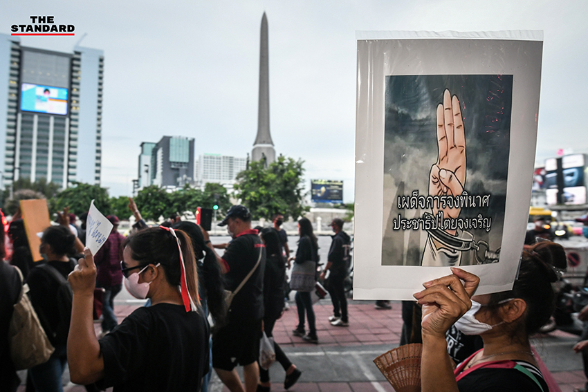 โดยก่อนเริ่มกิจกรรมได้มีการชูสามนิ้วที่ป้าย พร้อมตะโกนให้ พล.อ. ประยุทธ์ จันทร์โอชา นายกรัฐมนตรี และ พล.อ. ประวิตร วงษ์สุวรรณ รองนายกรัฐมนตรี ออกไป และเปล่งเสียง “เผด็จการจงพินาศ ประชาธิปไตยจงเจริญ”