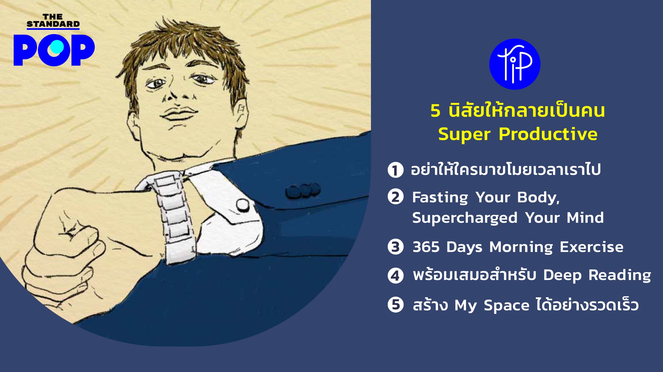 ไม่อยากเป็นคนที่ตื่นมาแล้วเอาแต่ง่วงและขี้เกียจ มาลองปรับปรุงตัวเองให้ Super Productive มากขึ้นกันดีกว่า จะมีวิธีไหนที่ทำได้บ้าง THE STANDARD POP คัดสรรมาจากบทความของ คุณรวิศ หาญอุตสาหะ กรรมการผู้จัดการ บริษัท ศรีจันทร์สหโอสถ จำกัด วิทยากรพิเศษและนักเขียนด้านธุรกิจการตลาด ที่เคยเขียนบทความ Opinion ใน THE STANDARD ที่มียอดวิวกว่า 58,000 วิว ซึ่งหากใครต้องการเจาะลึกดีเทลในแต่ละข้อ สามารถคลิกอ่านบทความ ‘ปรับ 5 นิสัย อัปเกรดความ Productive ให้กลายเป็น Super Productive’ ได้ที่นี่
