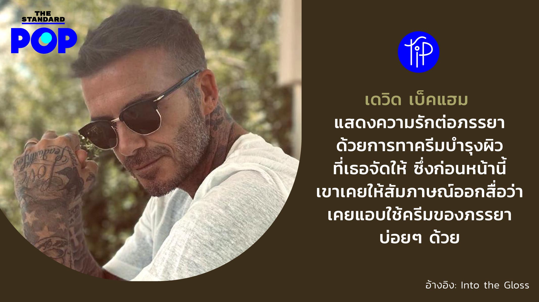 Pop Tip: เดวิด เบ็คแฮม แสดงความรักต่อภรรยาด้วยการทาครีมบำรุงผิวที่เธอจัดให้ ซึ่งก่อนหน้านี้เขาเคยให้สัมภาษณ์ออกสื่อว่าเคยแอบใช้ครีมของภรรยาบ่อยๆ ด้วย