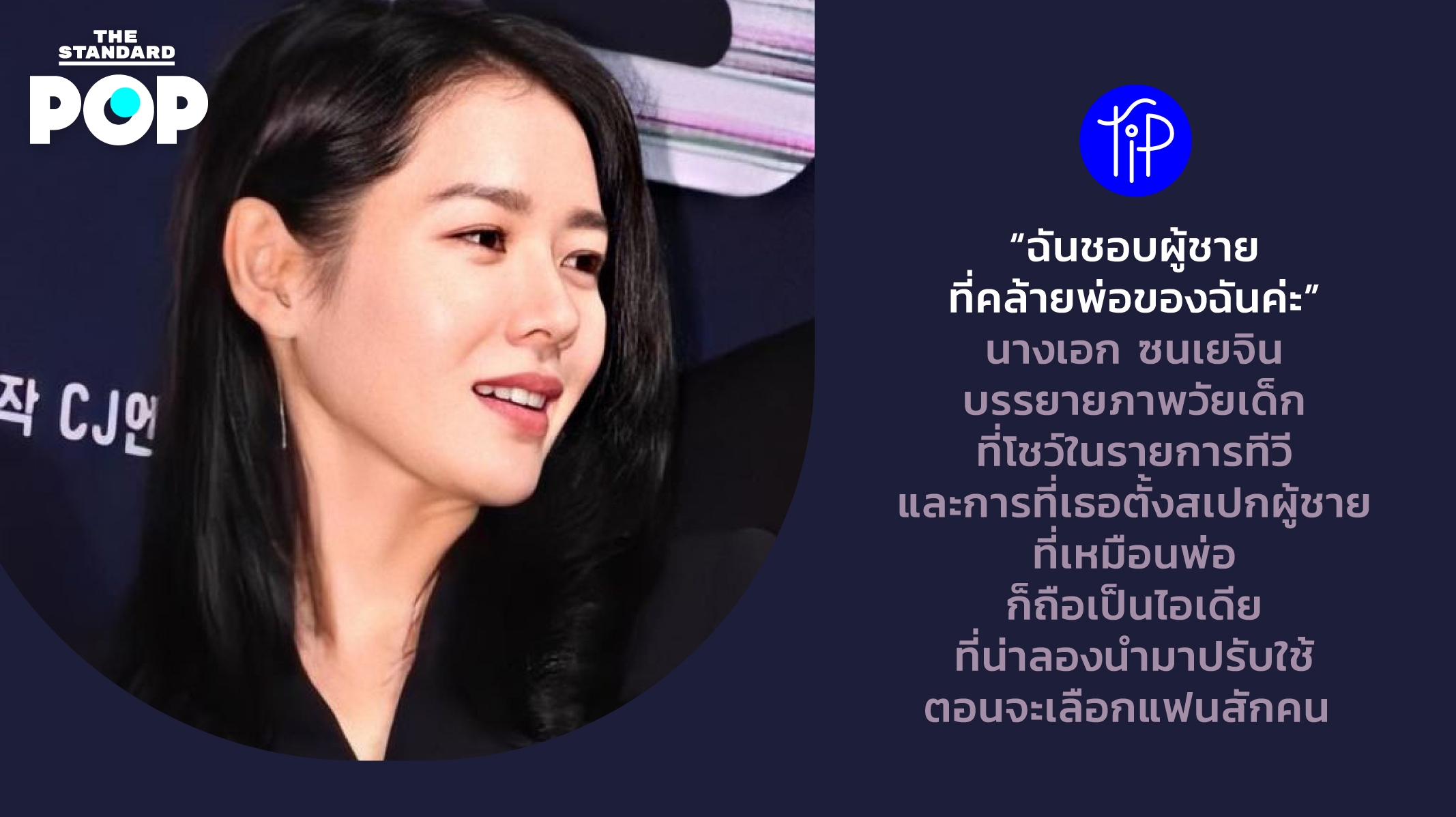 Pop Tip: “ฉันชอบผู้ชายที่คล้ายพ่อของฉันค่ะ” นางเอก ซนเยจิน บรรยายภาพวัยเด็กที่โชว์ในรายการทีวี และการที่เธอตั้งสเปกผู้ชายที่เหมือนพ่อ ก็ถือเป็นไอเดียที่น่าลองนำมาปรับใช้ตอนจะเลือกแฟนสักคน