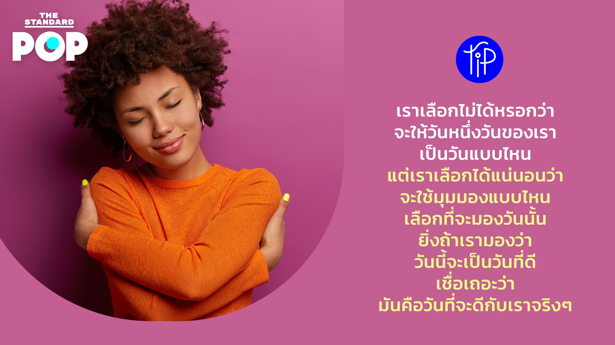 Pop Tip: เราเลือกไม่ได้หรอกว่าจะให้วันหนึ่งวันของเราเป็นวันแบบไหน แต่เราเลือกได้แน่นอนว่าจะใช้มุมมองแบบไหนเลือกที่จะมองวันนั้น ยิ่งถ้าเรามองว่าวันนี้จะเป็นวันที่ดี เชื่อเถอะว่ามันคือวันที่จะดีกับเราจริงๆ