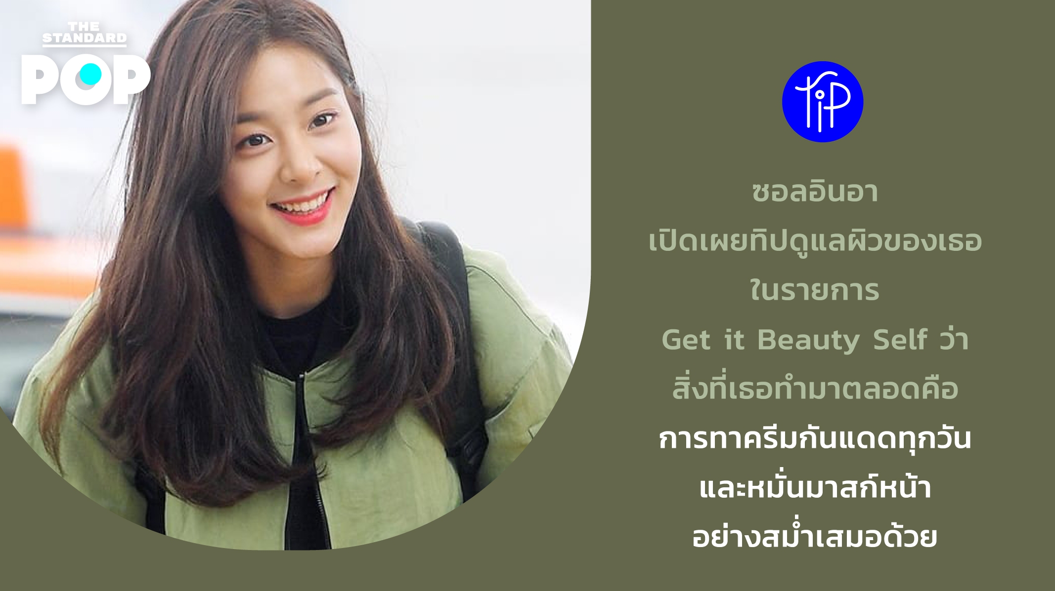Pop Tip: ซอลอินอา เปิดเผยทิปดูแลผิวของเธอในรายการ Get it Beauty Self ว่า สิ่งที่เธอทำมาตลอดคือการทาครีมกันแดดทุกวัน และหมั่นมาสก์หน้าอย่างสม่ำเสมอด้วย