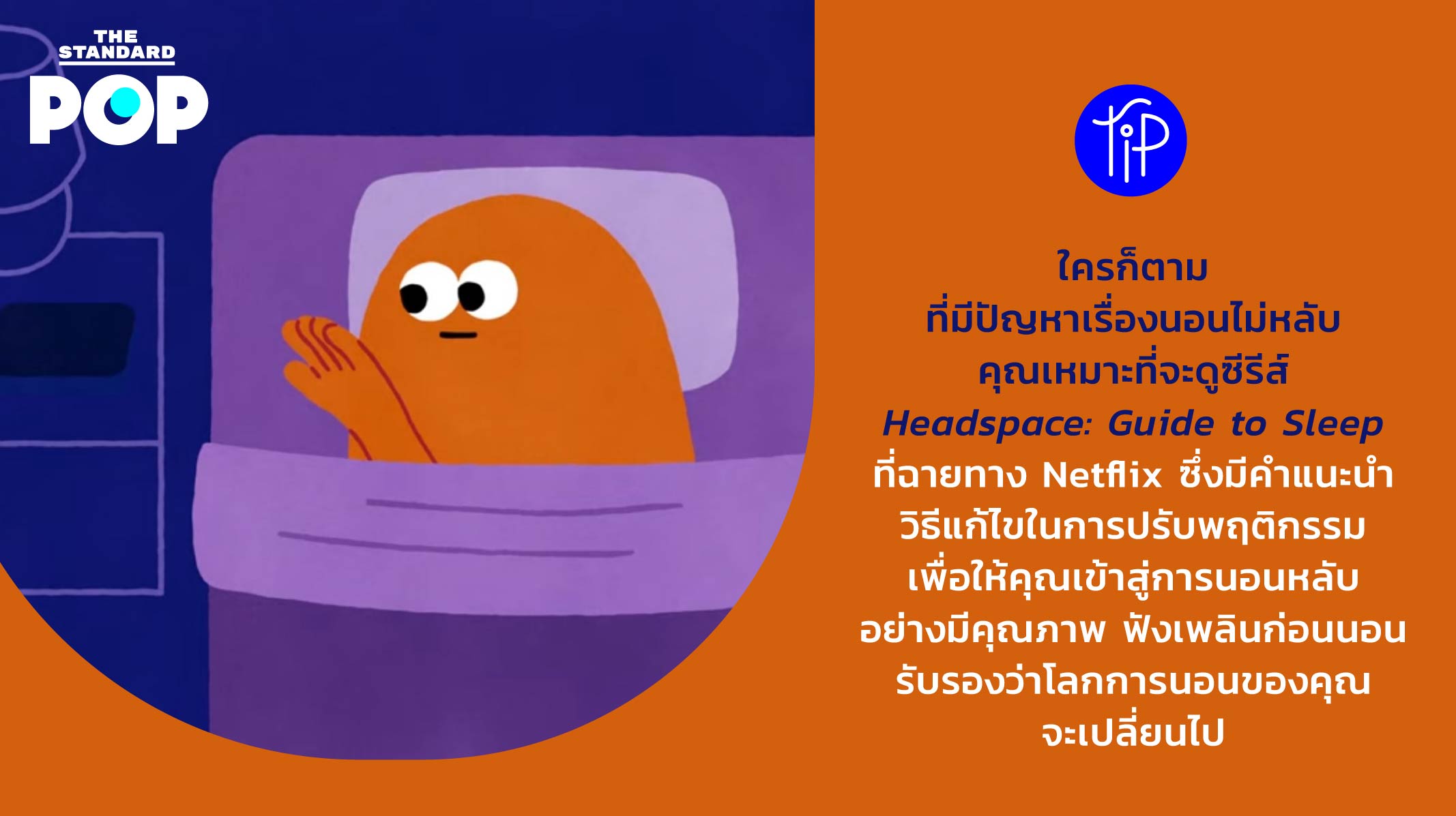 POP Tip: ใครก็ตามที่มีปัญหาเรื่องนอนไม่หลับ คุณเหมาะที่จะดูซีรีส์ Headspace: Guide to Sleep ที่ฉายทาง Netflix ซึ่งมีคำแนะนำ วิธีแก้ไขในการปรับพฤติกรรม เพื่อให้คุณเข้าสู่การนอนหลับอย่างมีคุณภาพ ฟังเพลินก่อนนอน รับรองว่าโลกการนอนของคุณจะเปลี่ยนไป