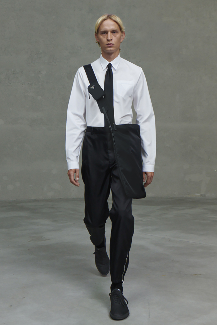 คอลเล็กชันนี้มีทั้งหมด 59 ลุค ซึ่งทางดีไซเนอร์ มิวเซีย ปราด้า อยากกลับไปโฟกัสแก่นหลักว่า เราใส่เสื้อผ้าอย่างไร เพราะอะไร และใส่ไปไหน โดยผสมผสานกลิ่นอายความทางการ ความคลาสสิก ความเป็นสปอร์ตแวร์ และความล้ำสมัย เข้าด้วยกัน ซึ่งในส่วนของเสื้อผ้าผู้ชายก็จะเน้นการทำชุดสูท Tailoring สุดเนี้ยบแบบเข้ารูป ที่นำเนื้อผ้าอย่างไนลอนที่เป็นเสาหลักของ Prada มาใช้ ส่วนเสื้อผ้าผู้หญิงก็ใช้เนื้อผ้าคล้ายกัน แต่เล่นกับเรื่องรูปทรงให้ดูมี Volume แบบดีเทลเสื้อผ้ากูตูร์