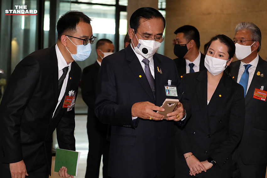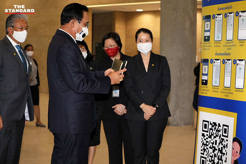 หลังจากเป็นประธานประชุม ศบค. ชุดเล็ก หารือแนวทางการผ่อนปรนระยะ 3 และการลดเวลาเคอร์ฟิวเพิ่มเติมที่ทำเนียบรัฐบาลเมื่อช่วงเช้า เมื่อเวลา 14.40 น. พล.อ. ประยุทธ์ จันทร์โอชา นายกรัฐมนตรีและรัฐมนตรีว่าการกระทรวงกลาโหม ก็เดินทางมาที่อาคารรัฐสภาเพื่อเข้าร่วมการประชุมสภาผู้แทนราษฎรเพื่อพิจารณา พ.ร.ก. กู้เงินในวันที่สอง โดยทันทีที่มาถึง นายกรัฐมนตรีฟังการชี้แจงการทำงานของแอปพลิเคชัน ‘รัฐจริงใจ ปลอดภัยไร้โควิด’ ที่รัฐสภานำ QR Code มาตั้งวางไว้ที่ทางเข้าเพื่อบันทึกประวัติบุคคลที่เข้ามาในรัฐสภา