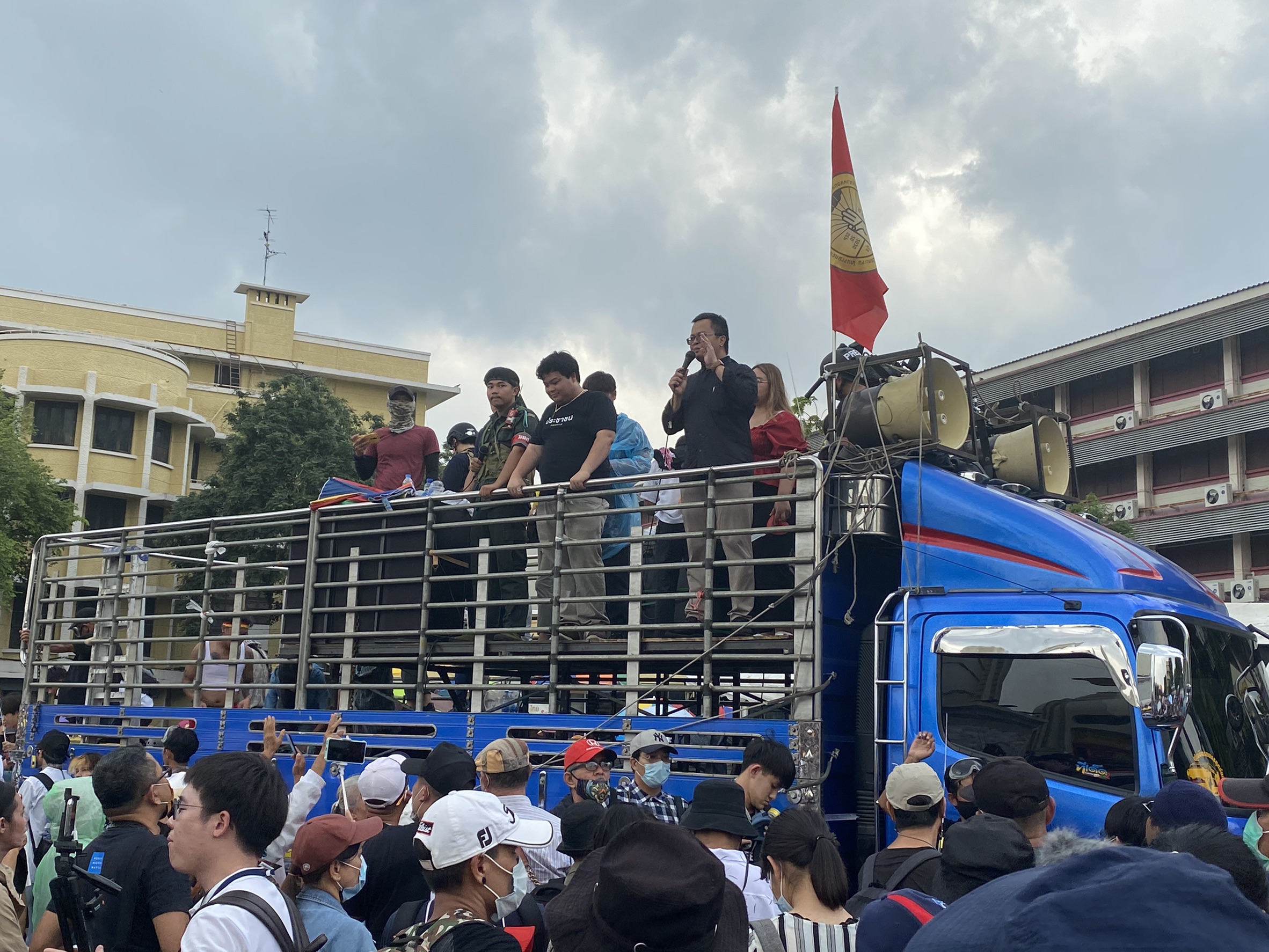 10.20 น. ภาณุพงศ์ จาดนอก หรือ ไมค์ ระยอง ให้สัมภาษณ์ระบุว่า ขณะนี้กำลังรอมวลชนมาพร้อมกันในเวลา 14.00 น. จากนั้นจะเคลื่อนมวลชนไปยังทำเนียบรัฐบาล และจะพยายามหลีกเลี่ยงการปะทะ พร้อมขอเจ้าหน้าที่อย่าใช้ความรุนเเรงกับผู้ชุมนุม ซึ่งหากเกิดความรุนเเรง หรือมีการสลายการชุมนุม ก็จะยกระดับการชุมนุม