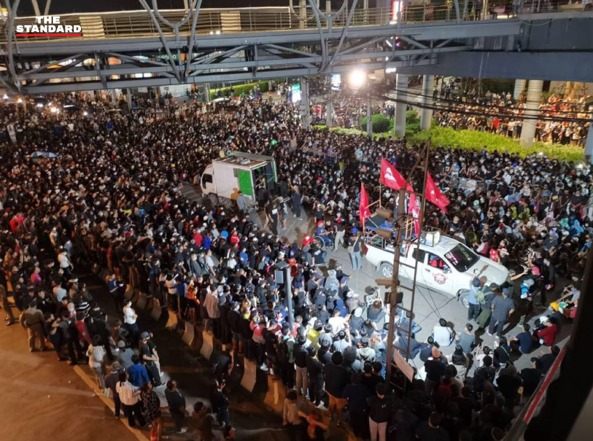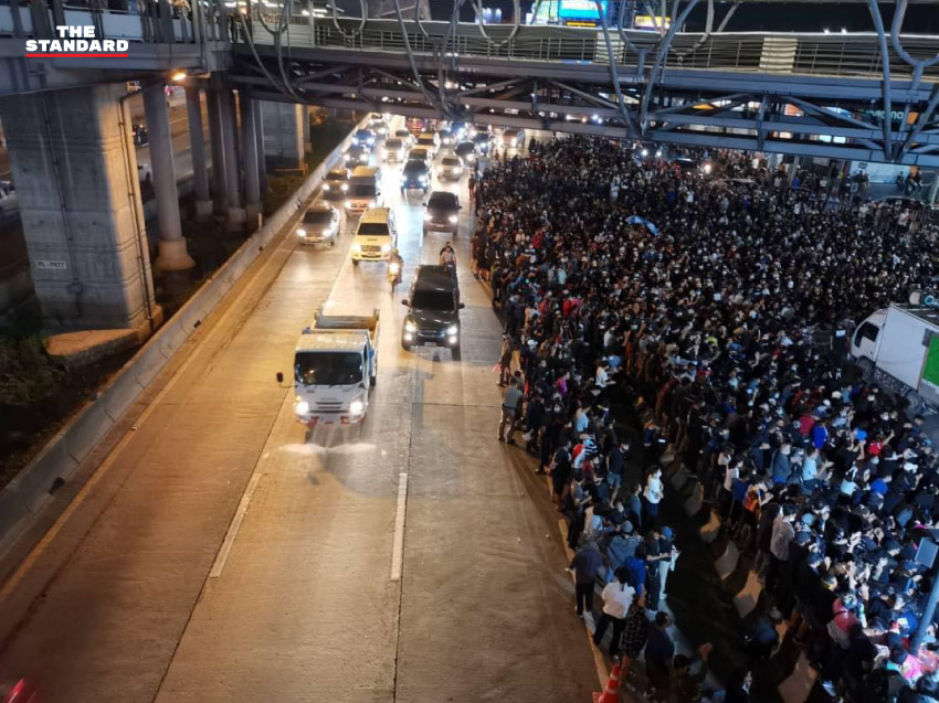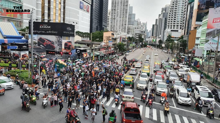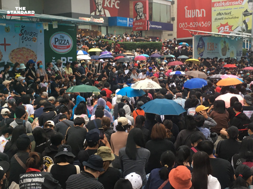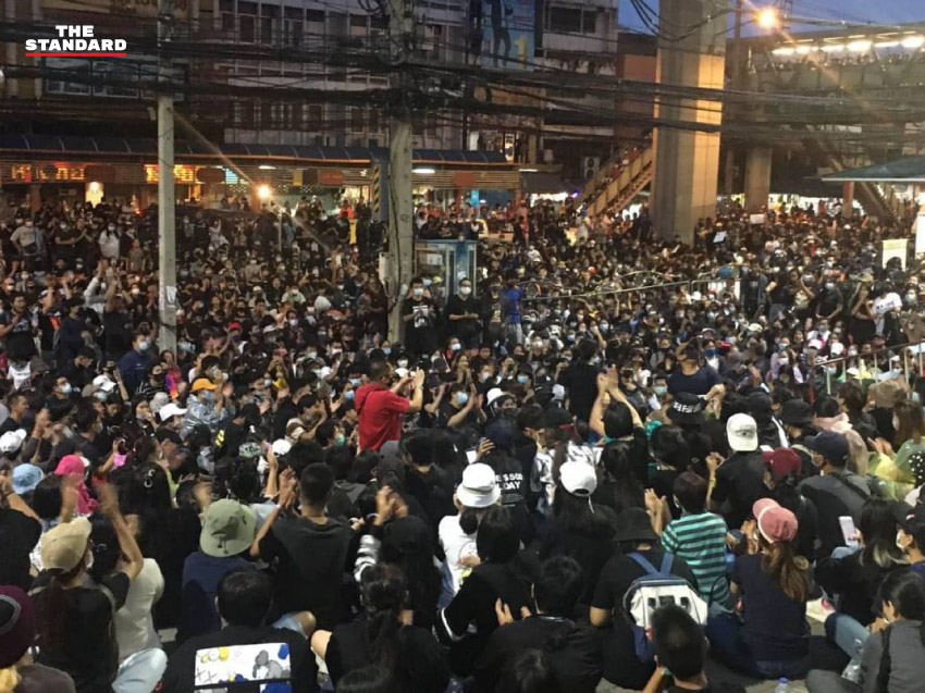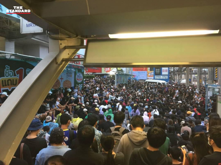 ทั้งนี้ ตั้งแต่เวลา 14.30 น. เป็นต้นไป หลังมีการประกาศชุมนุมทุกสถานีรถไฟฟ้าจากแนวร่วมธรรมศาสตร์และการชุมนุมและเครือข่าย