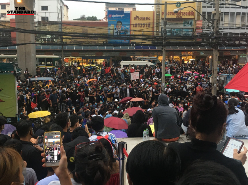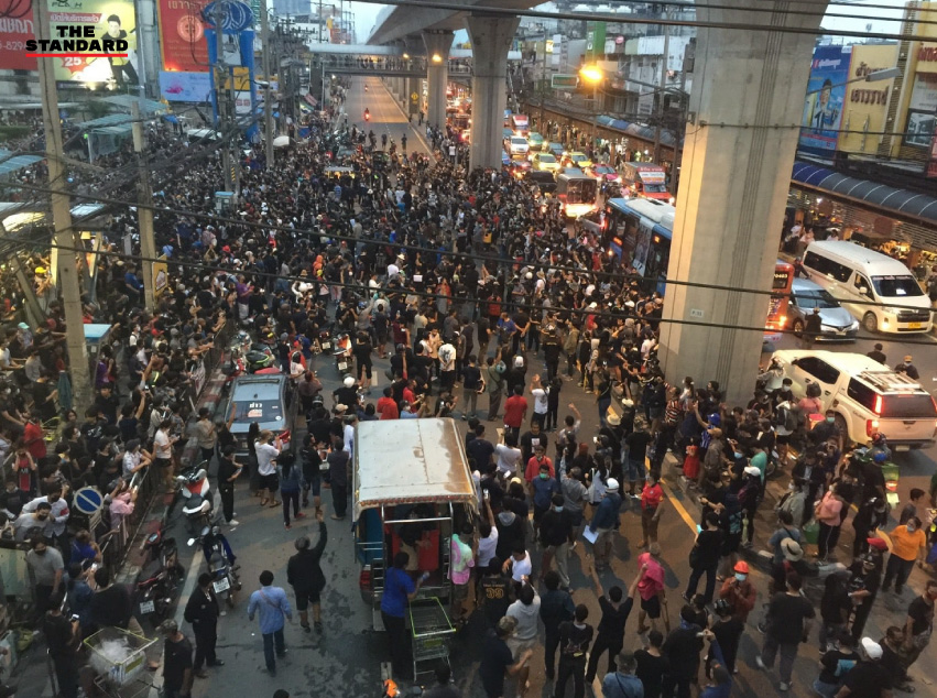 16.10 น. ผู้ชุมนุมทยอยรวมตัวกันบริเวณใต้ BTS สถานีอโศก โดยก่อนหน้านี้กลุ่มคณะราษฎรได้ประกาศให้แยกอโศกเป็นจุดชุมนุมหลักในวันนี้
