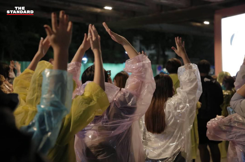 18.48 น. ‘2 ทุ่มกลับบ้าน’ กลุ่มผู้ชุมนุมตะโกนบอกต่อๆ กัน เพื่อสื่อสารให้ยุติการชุมนุมในเวลา 20.00 น.