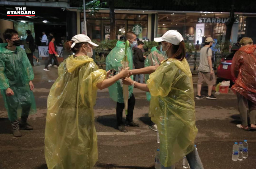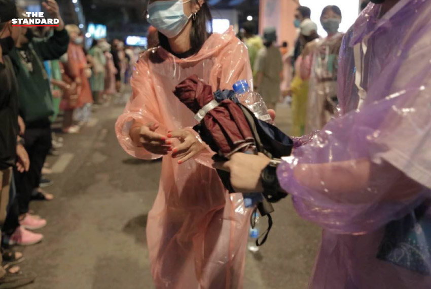 18.32 น. กลุ่มอาสาสมัครรักษาความปลอดภัยของมวลชนเริ่มตั้งแนวป้องกัน โดยต่างคนต่างสวมหมวกกันน็อก พร้อมกางร่มป้องกันตนเอง เตรียมพร้อมหากมีการสลายการชุมนุม