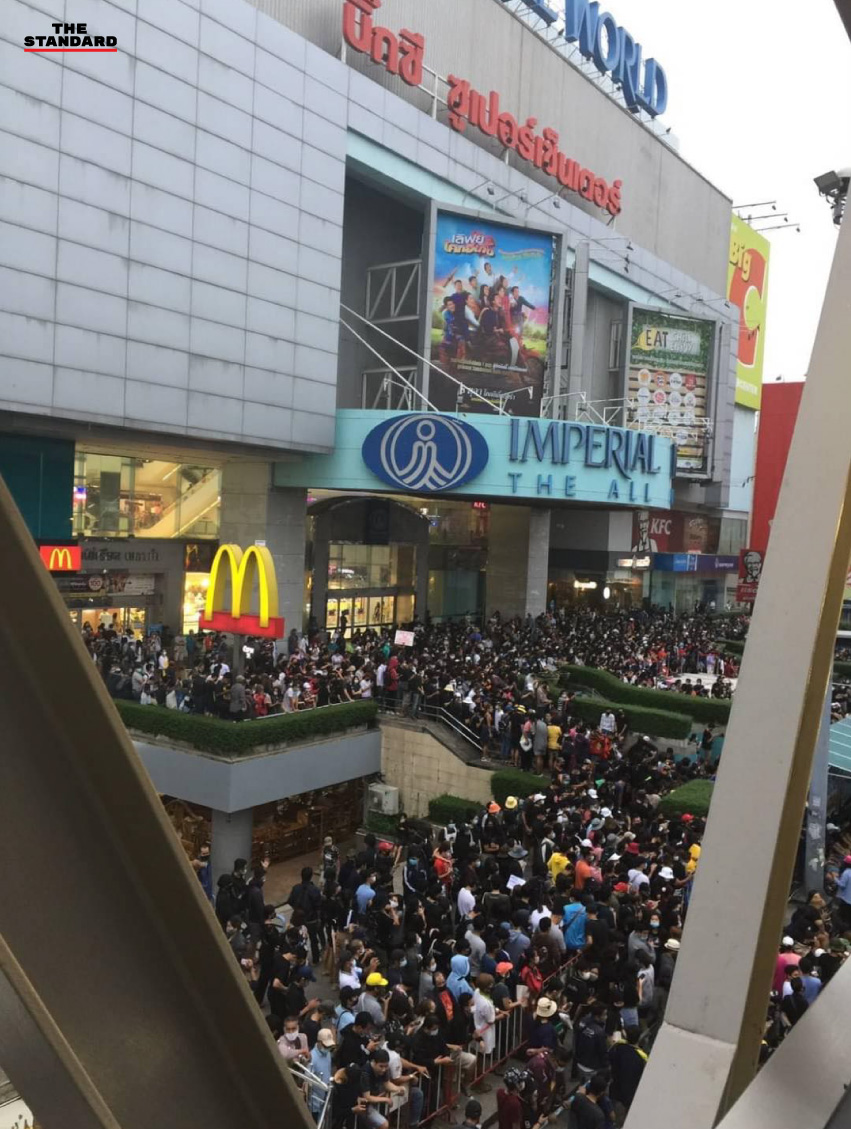 17.38 น. กลุ่มผู้ชุมนุมรวมตัวกันหน้าห้างอิมพีเรียล เวิลด์ สำโรง จังหวัดสมุทรปราการ โดยมีการสลับกันปราศรัย และตะโกนไล่ พล.อ. ประยุทธ์ จันทร์โอชา ให้ออกจากตำแหน่งนายกรัฐมนตรี
