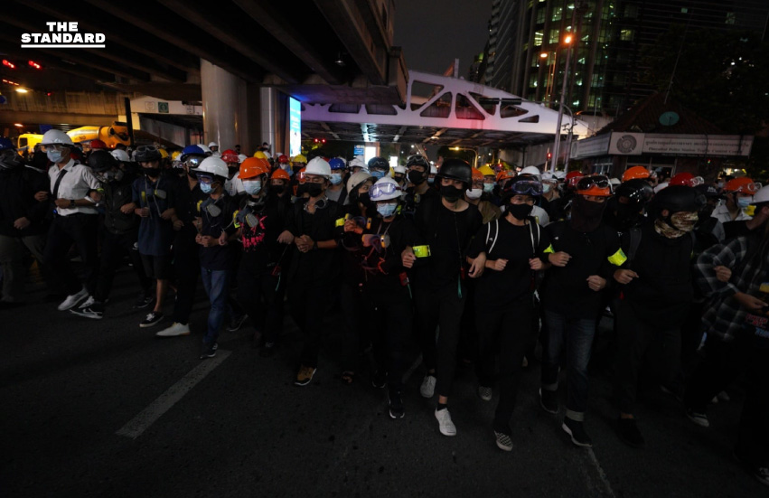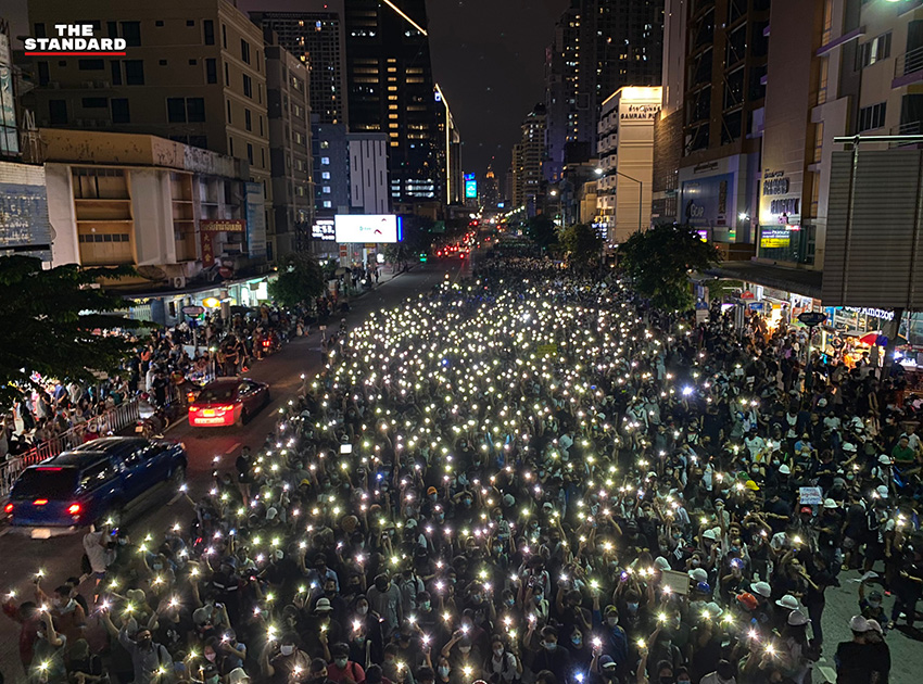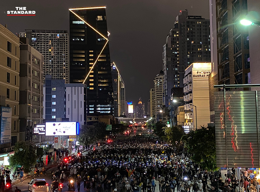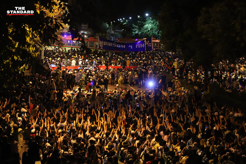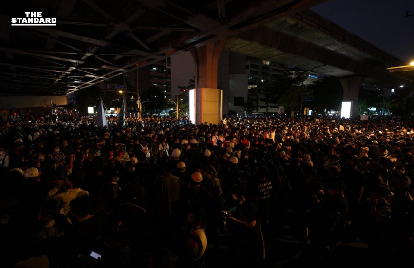 16.37 น. มวลชนทยอยรวมตัวกันที่อนุสาวรีย์ชัยสมรภูมิ ขณะที่การเดินทางเข้าพื้นที่ค่อนข้างยากลำบาก เพราะตำรวจปิดการจราจรที่มุ่งหน้ามาอนุสาวรีย์ชัยสมรภูมิเกือบทุกข่องทาง เช่นเดียวกับรถไฟฟ้า BTS ที่ประกาศปิดสถานีสนามเป้า อนุสาวรีย์ชัยสมรภูมิ พญาไท และราชเทวี