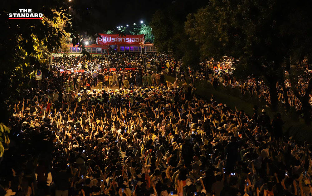 17.30 น. บรรยากาศบริเวณทำเนียบรัฐบาล เจ้าหน้าที่เริ่มตรึงกำลังเข้มทั้งภายในทำเนียบรัฐบาลและบริเวณโดยรอบ โดยมีการวางรั้วลวดหนาม พร้อมประกาศสั่งให้ข้าราชการออกจากทำเนียบทั้งหมด หลังผู้ชุมนุมประกาศผ่านโซเชียลมีเดียให้ผู้ชุมนุมที่รวมตัวบริเวณอนุสาวรีย์ชัยสมรภูมิเคลื่อนขบวนมุ่งหน้าทำเนียบรัฐบาล