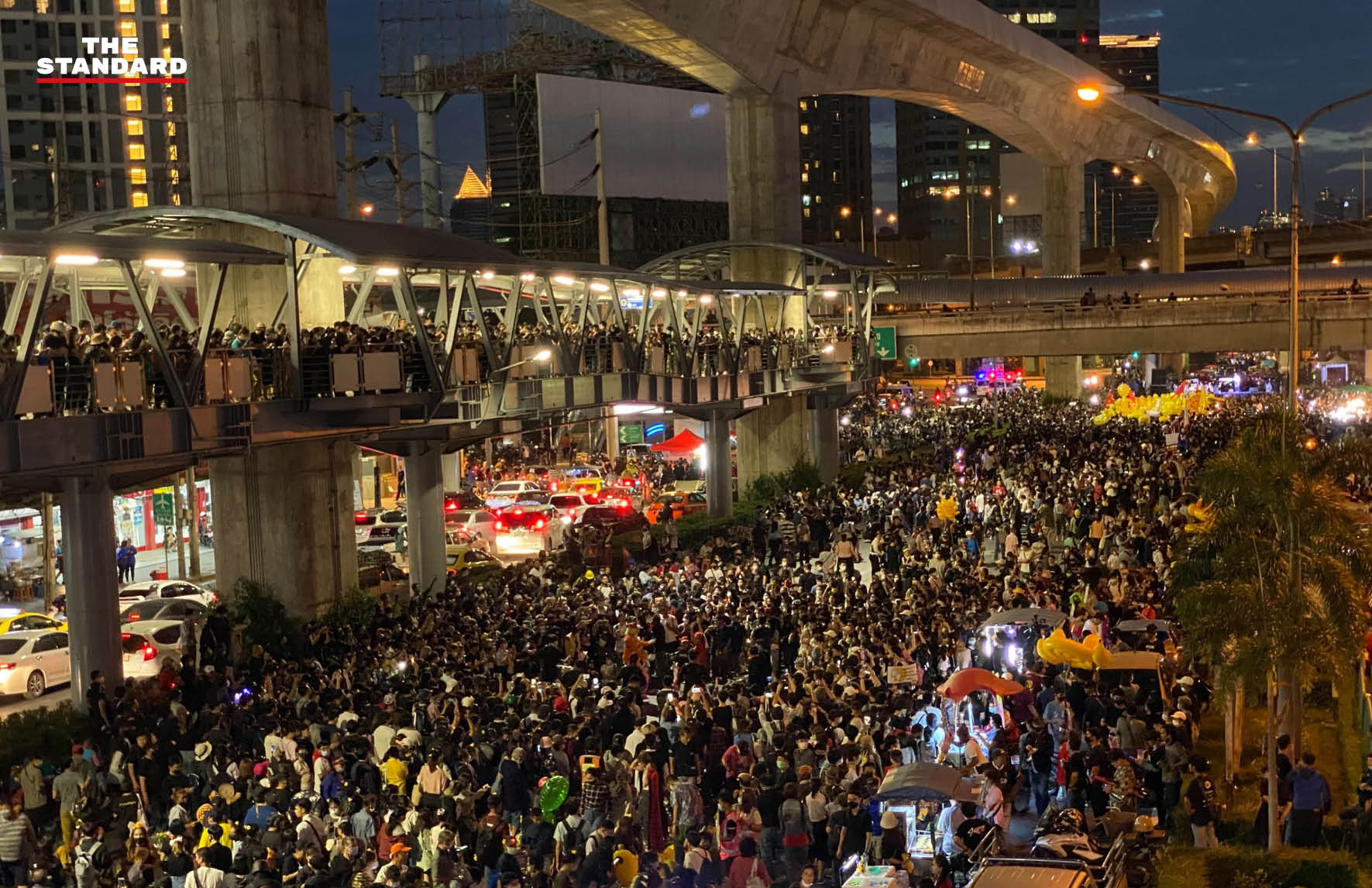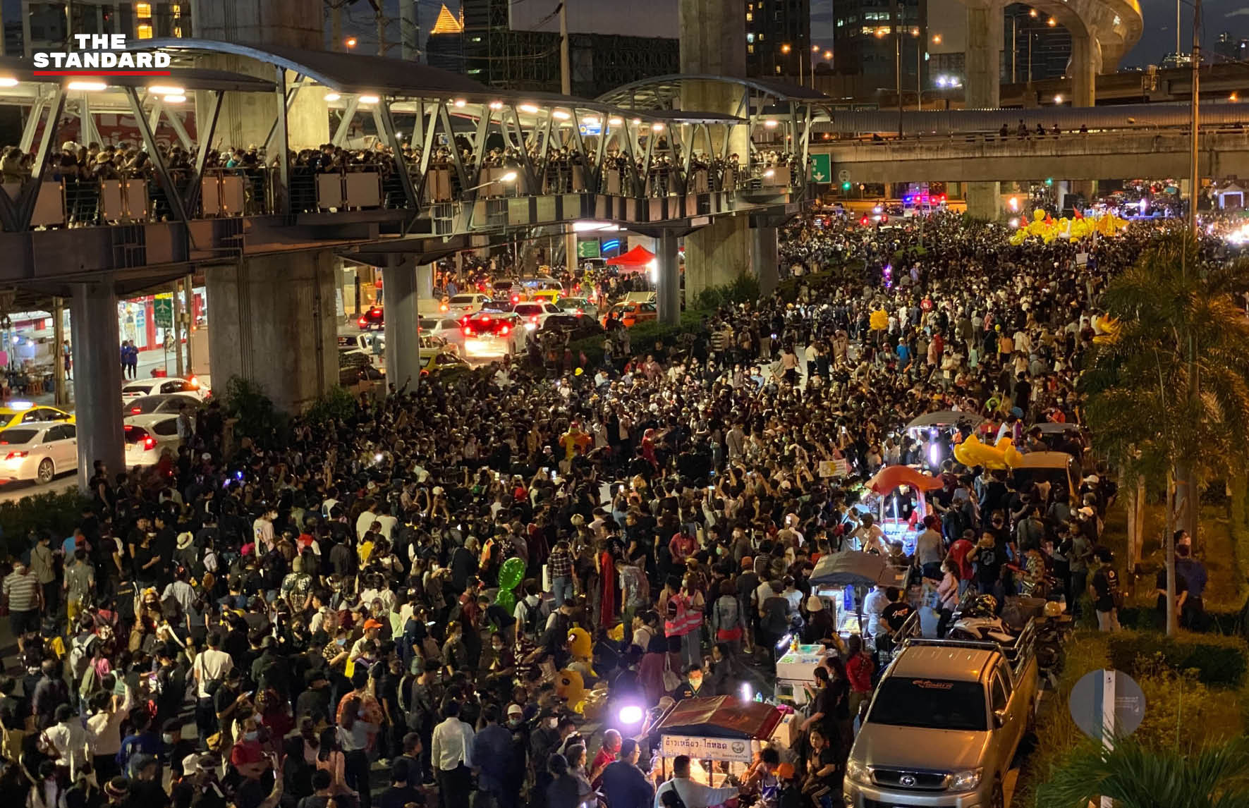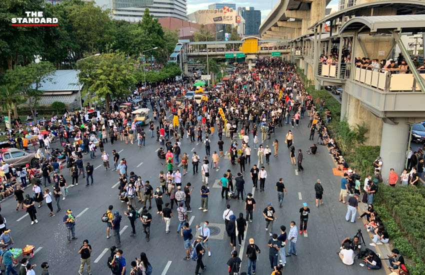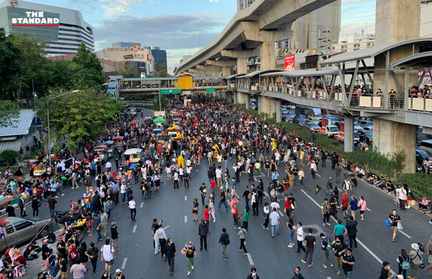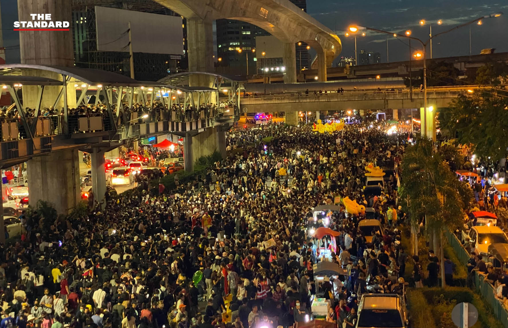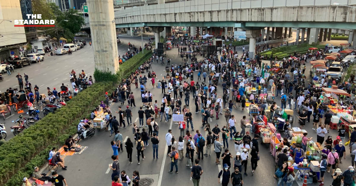 บรรยากาศบริเวณห้าแยกลาดพร้าว มวลชนทยอยเข้าร่วมชุมนุมเต็มพื้นที่