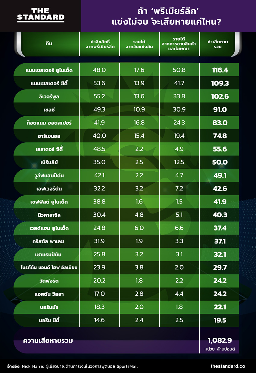 มูลค่าความเสียหายหากพรีเมียร์ลีกแข่งไม่จบที่ผู้เชี่ยวชาญได้วิเคราะห์ไว้