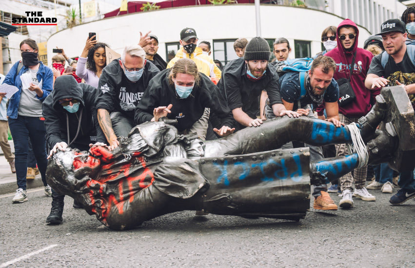 กลุ่มผู้ประท้วงหลายพันคนเข้าร่วมชุมนุมต่อต้านการเหยียดสีผิวและเรียกร้องความเป็นธรรมให้แก่ จอร์จ ฟลอยด์ ที่เมืองบริสโตลของอังกฤษ เมื่อวานนี้ (7 มิถุนายน) โดยสถานการณ์ประท้วงเริ่มต้นอย่างสงบ ก่อนเกิดเหตุไม่คาดคิด หลังผู้ประท้วงกลุ่มหนึ่งช่วยกันโค่นรูปปั้นของ เอ็ดเวิร์ด โคลสตัน พ่อค้าทาส, สมาชิกรัฐสภา และผู้ใจบุญที่ได้รับการยกย่องจากชาวเมืองบริสโตลในยุคศตวรรษที่ 17 โดยผู้ประท้วงใช้เชือกคล้องและช่วยกันดึงรูปปั้นลงมากับพื้น ก่อนที่หลายคนจะกระโดดขึ้นไปเหยียบรูปปั้นและนำไปโยนทิ้งน้ำ ที่ท่าเรือบริเวณอ่าวบริสโตล ฮาร์เบอร์