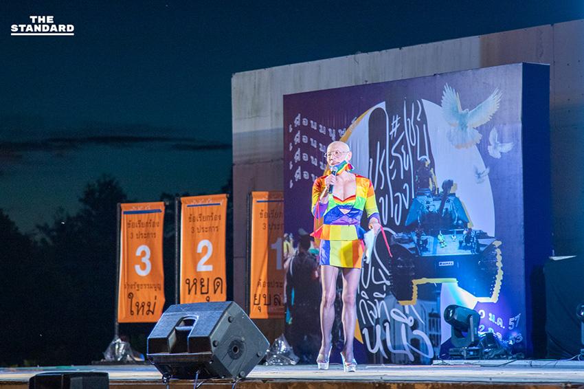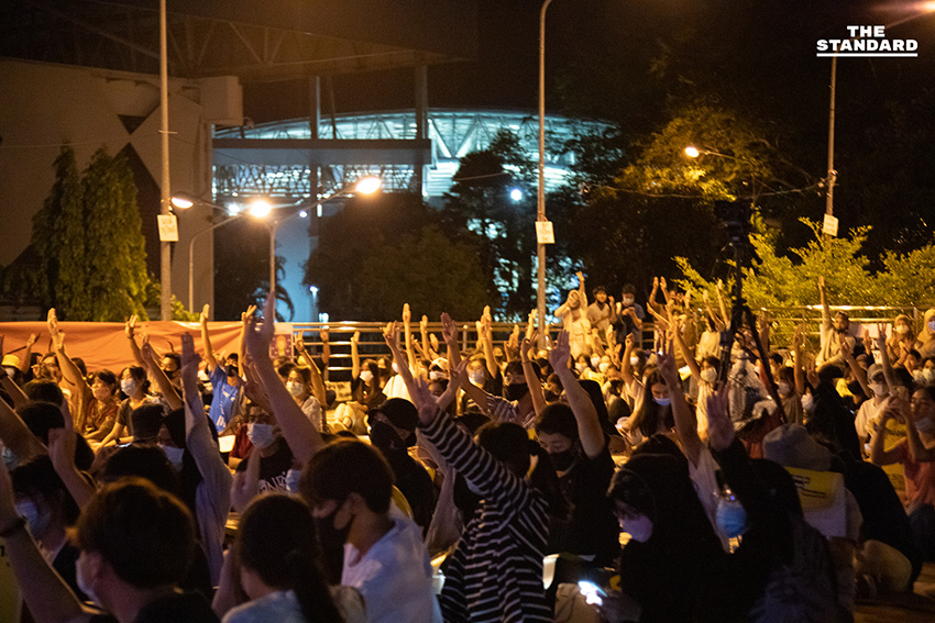 กระทั่งเวลา 18.00 น. ได้ร่วมกันชูสามนิ้ว และพิธีกรบนเวทีกล่าวว่า ‘ธงชาติและเพลงชาติไทย เป็นสัญลักษณ์ของความเป็นไทย เราจงร่วมใจชูสามนิ้วด้วยความภาคภูมิใจในเอกราชและความเสียสละของประชาชนไทย’ ก่อนจะเปิดเพลงชาติไทยและชูสามนิ้วจนจบเพลง