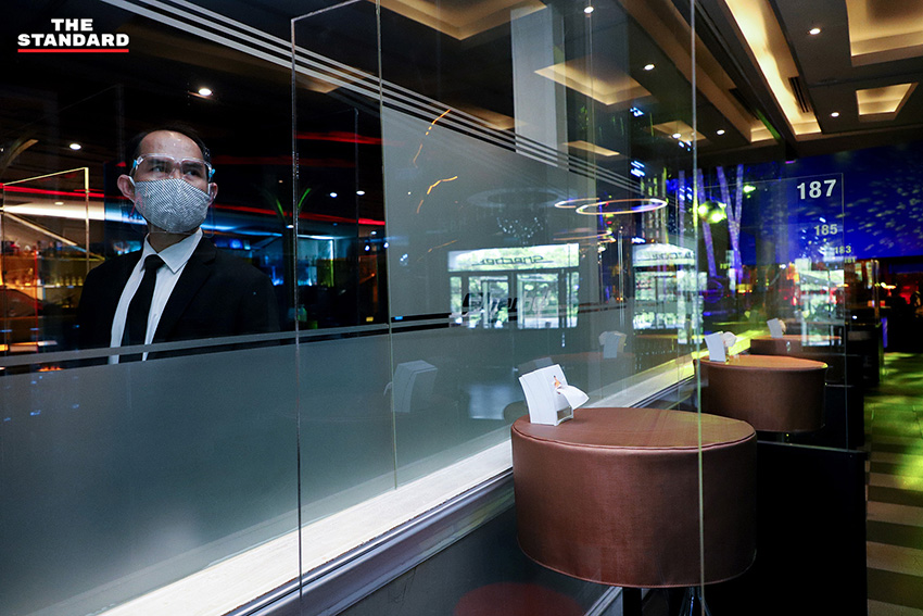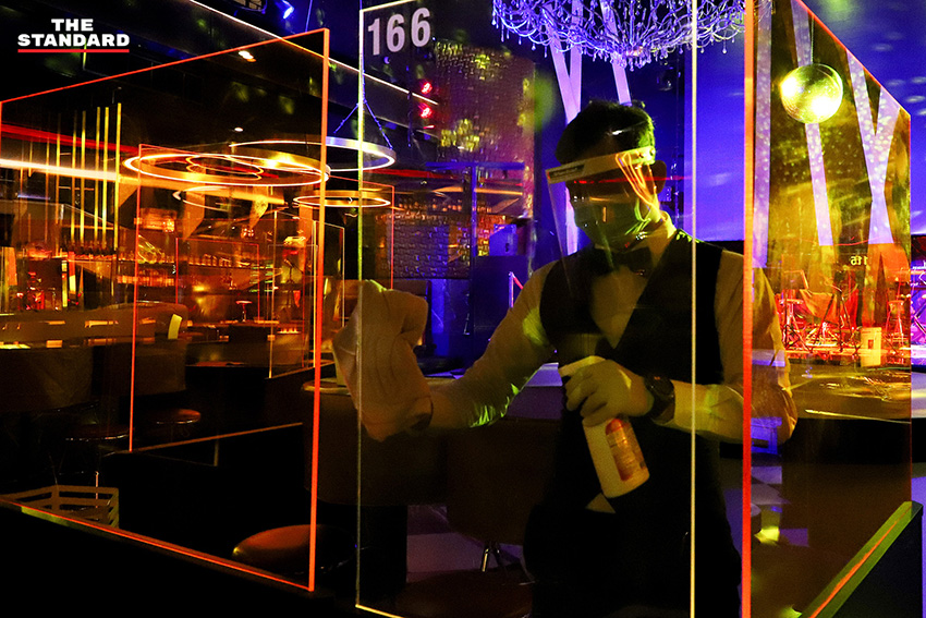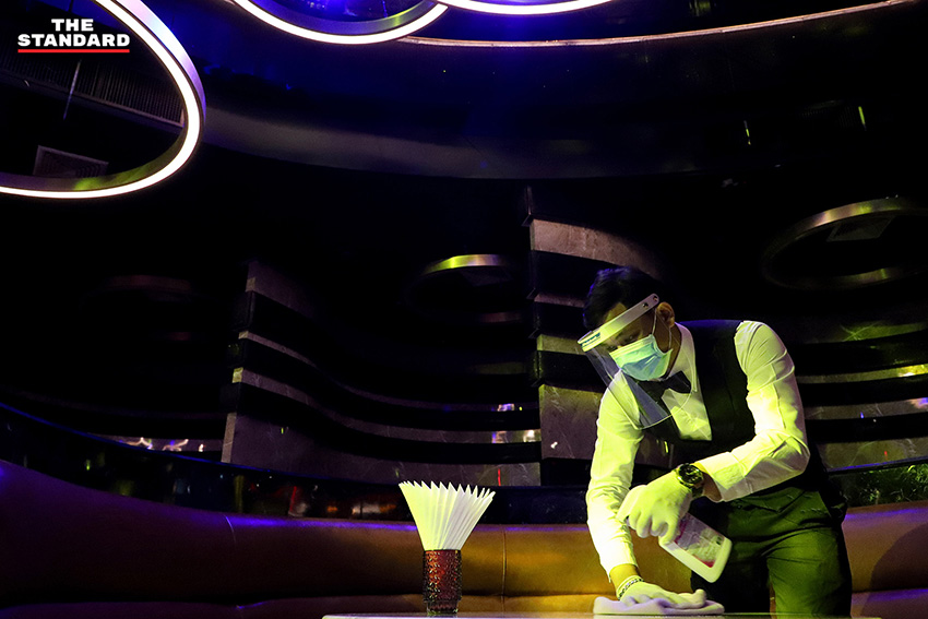 ในส่วนของผับ-บาร์ก็มีการเตรียมความพร้อมที่จะกลับมาเปิดอีกครั้ง ภายใต้การปฏิบัติตามมาตรการต่างๆ ที่รัฐกำหนดอย่างเคร่งครัด THE STANDARD ลงพื้นที่สำรวจสถานบันเทิงย่านเอกมัย พูดคุยสอบถามเจ้าของกิจการ ซึ่งดีใจที่กลับมาเปิดได้อีกครั้ง หลังจากที่ปิดมาหลายเดือน เพราะส่งผลกระทบต่อรายได้อย่างหนักในช่วงที่ผ่านมา