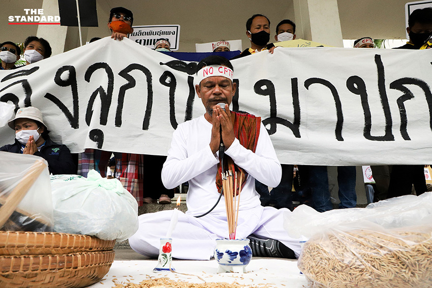 วันนี้ (14 กรกฎาคม) กลุ่มเครือข่ายภาคประชาชนรวมตัวกันมาร้องเรียนที่ศูนย์รับเรื่องราวร้องทุกข์ของรัฐบาล สำนักงานปลัดสำนักนายกรัฐมนตรี เพื่อให้รัฐบาลยุติการเข้าร่วมสัญญาข้อตกลงที่ครอบคลุมและก้าวหน้าสำหรับหุ้นส่วนทางเศรษฐกิจภาคพื้นแปซิฟิก (CPTPP) โดยมีการตั้งขบวนปราศรัยด้านหน้าที่ทำการศูนย์รับเรื่องราวร้องทุกข์ ก่อนที่จะเดินขบวนเข้าไปด้านในของศูนย์รับเรื่องราวร้องทุกข์ โดยทางกลุ่มผู้มายื่นหนังสือร้องเรียนได้กล่าวถึงข้อเสียของการที่รัฐบาลจะนำประเทศเข้าร่วมสัญญา CPTPP และได้สวดบูชาขอขมาพระแม่โพสพ