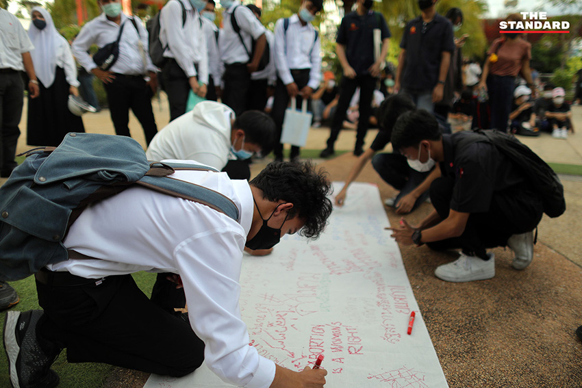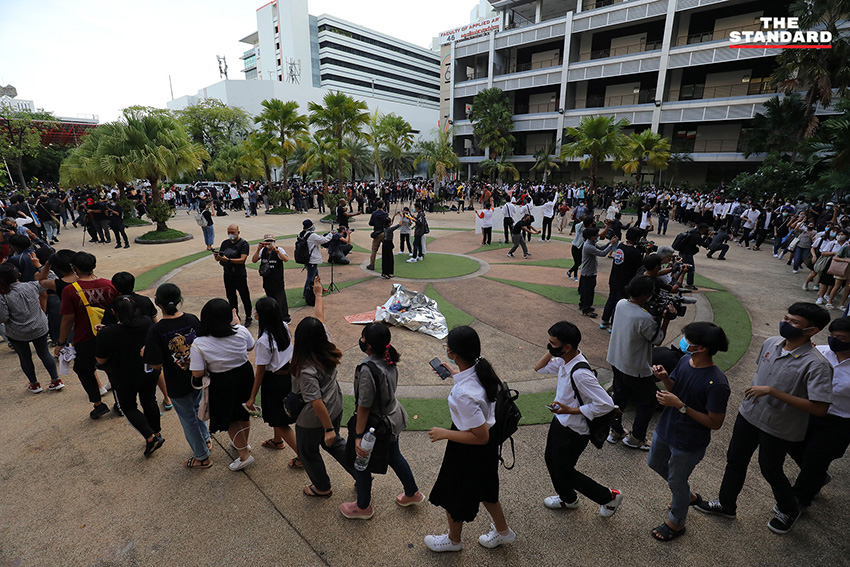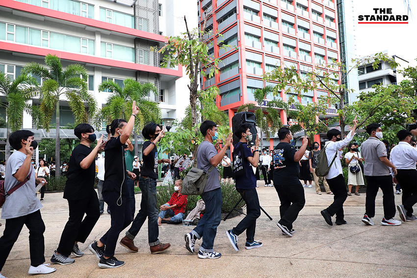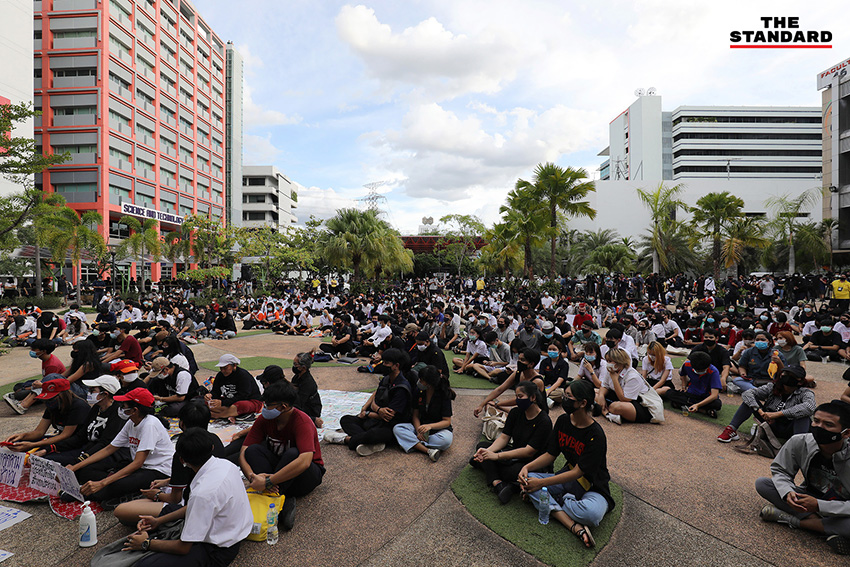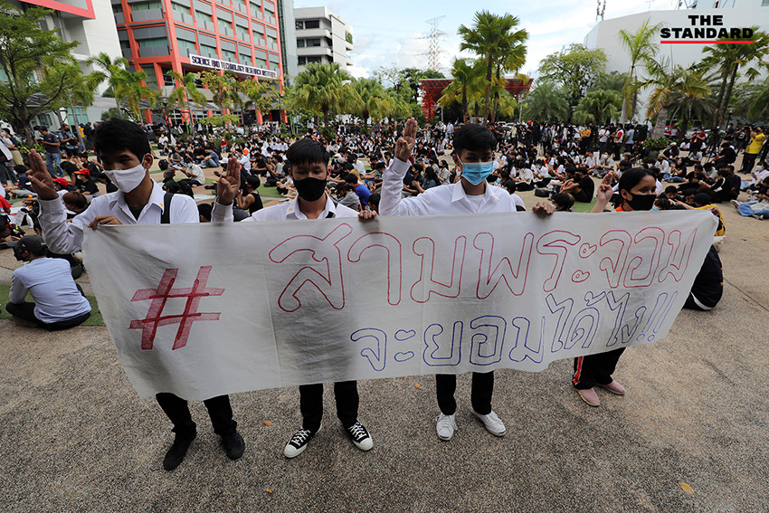 วันนี้ (30 กรกฎาคม) เครือข่ายนักศึกษามหาวิทยาลัยพระจอมเกล้าฯ 3 แห่ง ประกอบด้วย มหาวิทยาลัยเทคโนโลยีพระจอมเกล้าเจ้าคุณทหารลาดกระบัง, มหาวิทยาลัยเทคโนโลยีพระจอมเกล้าธนบุรี และมหาวิทยาลัยเทคโนโลยีพระจอมเกล้าพระนครเหนือ หรือ มจพ. ร่วมกับกลุ่มอาชีวะพิทักษ์ประชาชน และกลุ่มอาชีวะโค่นเผด็จการ ที่ชูคำขวัญ ‘สืบสานเจตนารมณ์วีรชน 14 ตุลา’ จัดกิจกรรมแฟลชม็อบออนทัวร์ ภายใต้คำขวัญ ‘สามพระจอมจะยอมได้ไง’ ที่ลานเฉลิมพระเกียรติ มจพ. เพื่อเป็นการสานต่อเจตนารมณ์และข้อเรียกร้อง 3 ข้อของกลุ่มเยาวชนปลดแอก สอดรับการเคลื่อนไหวของขบวนการเยาวชนในห้วงนี้ รวมถึงเรียกร้องให้ยกเลิกกฎหมายละเมิดสิทธิเสรีภาพของประชาชนด้วย