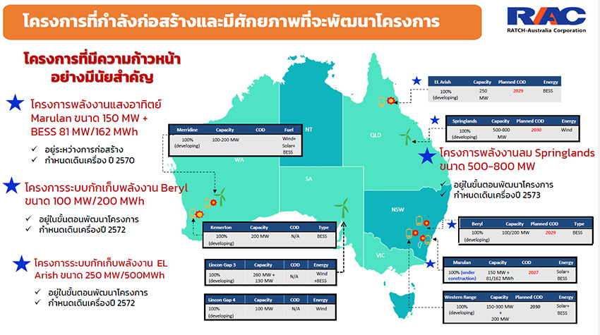 ภาพ: รายละเอียดโครงการลงทุนของ RAC ในประเทศออสเตรเลียที่มีการลงทุนไปแล้ว