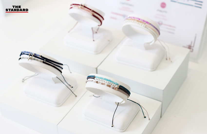 “เศรษฐกิจแบบนี้ใครจะเอาเงินไปซื้อของฟุ่มเฟือย นี่คือความเป็นจริงที่เราเปลี่ยนไม่ได้ แต่ถ้าเราเปลี่ยนมายด์เซ็ตให้กับจิวเวลรี จากของฟุ่มเฟือย หรือมองมันเป็นเครื่องประดับ ให้กลายเป็นของจำเป็นและเป็นสิ่งที่ต้องใส่ติดตัวล่ะ เราจึงตัดสินใจทำคอลเล็กชันสร้อยข้อมือศักดิ์สิทธิ์ (Reminder Collection) เป็นสร้อยข้อมือปลุกเสกจากพระพุทธคุณสายขาว ให้กลายเป็นเครื่องยึดเหนี่ยวทางจิตใจ จึงกลายเป็นของจำเป็น”