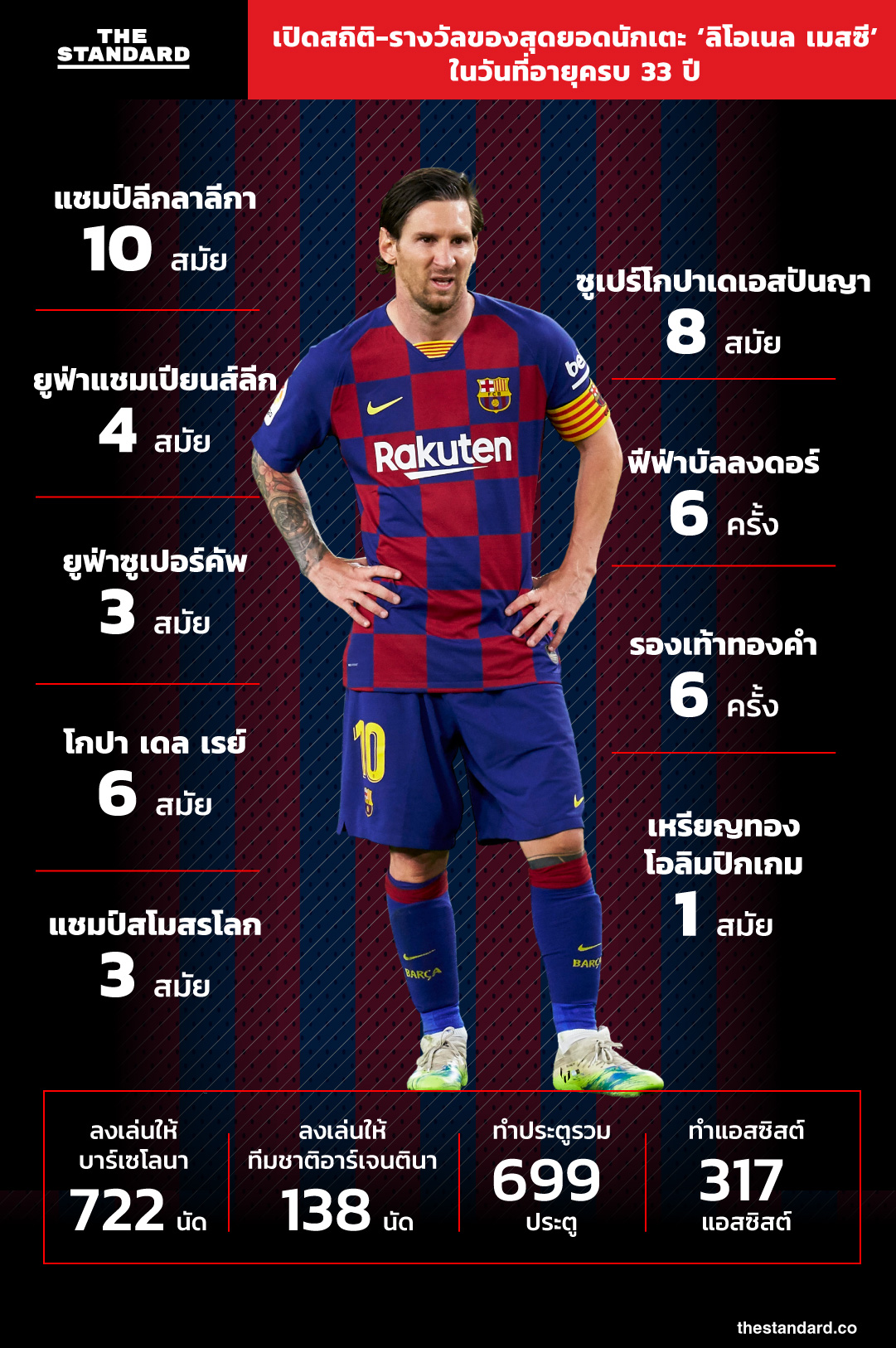 วันนี้ (24 มิถุนายน) เป็นวันคล้ายวันเกิดของ ลิโอเนล เมสซี ราชาลูกหนังโลกยุคปัจจุบัน ที่อายุครบ 33 ปีแล้ว และนี่คือผลงานการลงสนามของเขาตลอดชีวิตการเล่นที่ผ่านมา ซึ่งไม่มีคำไหนจะบรรยายได้ดีกว่าคำว่า ‘มหัศจรรย์’