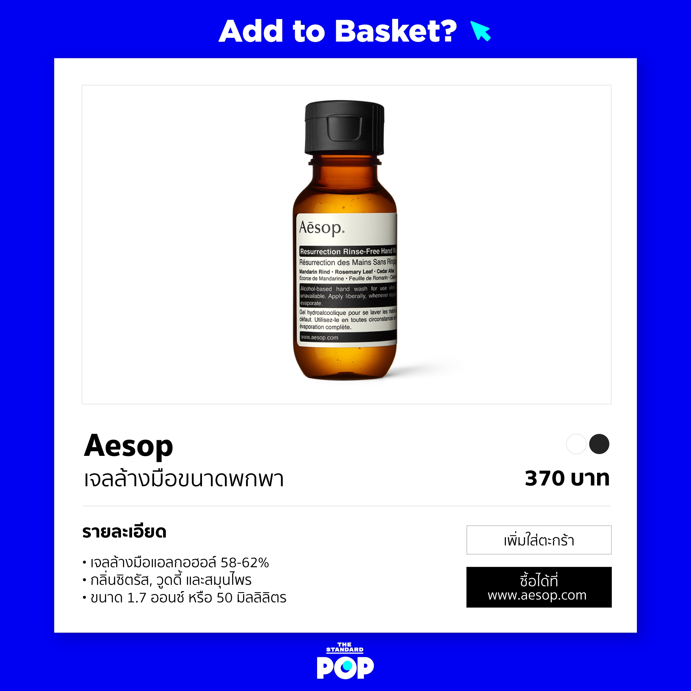 ไอเท็มจาก Add To Basket? วันนี้ THE STANDARD POP ขอร่วมแสดงความห่วงใยทุกคนในสถานการณ์การระบาดของโควิด-19 ด้วยเจลล้างมือแบรนด์สกินแคร์จากออสเตรเลียอย่าง Aesop