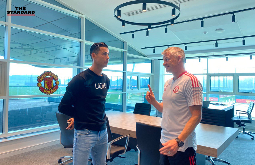 คริสเตียโน โรนัลโด มาถึงแมนเชสเตอร์แล้ว! สโมสรฟุตบอลแมนเชสเตอร์ ยูไนเต็ด ปล่อยภาพแรกของซูเปอร์สตาร์ลูกหนังวัย 36 ปีที่กลับมารายงานตัวฝึกซ้อมกับทีมเก่าอย่างเป็นทางการ โดยเริ่มจากภาพชุดที่พบกับ โอเล กุนนาร์ โซลชาร์ ผู้จัดการทีมในที่ศูนย์ฝึกแคร์ริงตัน สถานที่ทำการของสโมสร
