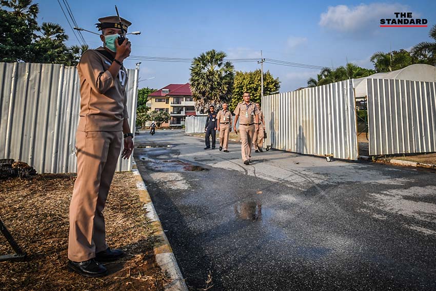 และที่บริเวณอาคารกิจการอาคารรับรองสัตหีบ สวัสดิการอาคารรับรอง กองทัพเรือ ซึ่งเป็นศูนย์เฝ้าระวังและติดตามคนไทยที่ผ่านการคัดกรองและตรวจสุขภาพจากโรงพยาบาลสมเด็จพระนางเจ้าสิริกิติ์ กรมแพทย์ทหารเรือ ก่อนส่งตัวเข้าพักภายในอาคารรับรอง ฐานทัพเรือสัตหีบ โดยใช้อาคาร 3 ถึงอาคาร 7 ซึ่งเป็นพื้นที่ควบคุมเพื่อรองรับคนไทย และจะต้องเฝ้าระวังติดตามอาการเป็นเวลา 14 วัน สำหรับอาคาร 1 และอาคาร 2 เตรียมไว้สำหรับรองรับแพทย์ เจ้าหน้าที่ และญาติผู้อพยพคนไทยที่เดินทางกลับจากเมืองอู่ฮั่น ประเทศจีน โดยได้มีการก่อสร้างแนวรั้วสังกะสีล้อม โดยบริเวณพื้นที่ควบคุมทำรั้วสูง 2 เมตร และปิดทึบถึง 3 ชั้น ระยะห่างจากตัวอาคารประมาณ 100 เมตร พร้อมทั้งมีเจ้าหน้าที่ทหารเรือยืนเฝ้าทุกจุดรอบบริเวณเพื่อกั้นอาณาเขตของเจ้าหน้าที่เพื่อป้องกันไม่ให้บุคคลภายนอกเข้าออกโดยเด็ดขาด