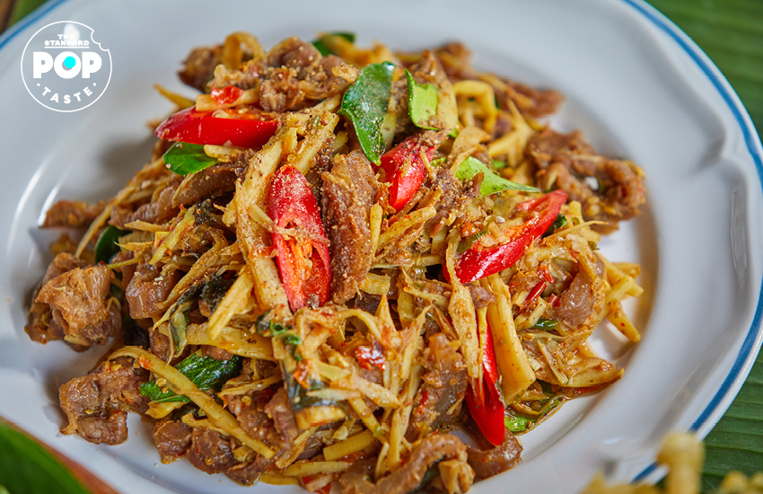 เนื้อผัดหน่อไม้ (500 บาท) เมนูประจำตระกูล เพราะทางบ้านปลูกหน่อไม้มาตั้งแต่สมัยยังไม่เปิดร้าน ใครไปใครมาก็มักให้ที่บ้านลุงเหมียวทำให้กินเสมอ เมื่อมาเปิดร้านจึงกลายเป็นเมนูประจำยอดนิยม รสจานนี้ไปทางเผ็ดร้อนด้วยเครื่องแกง เนื้อเหนียวเคี้ยวสนุกตัดกับความกรอบของหน่อไม้ ถูกใจคนชอบอาหารรสจัด