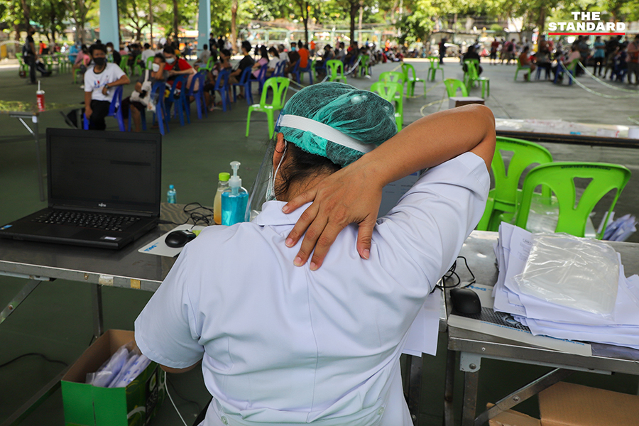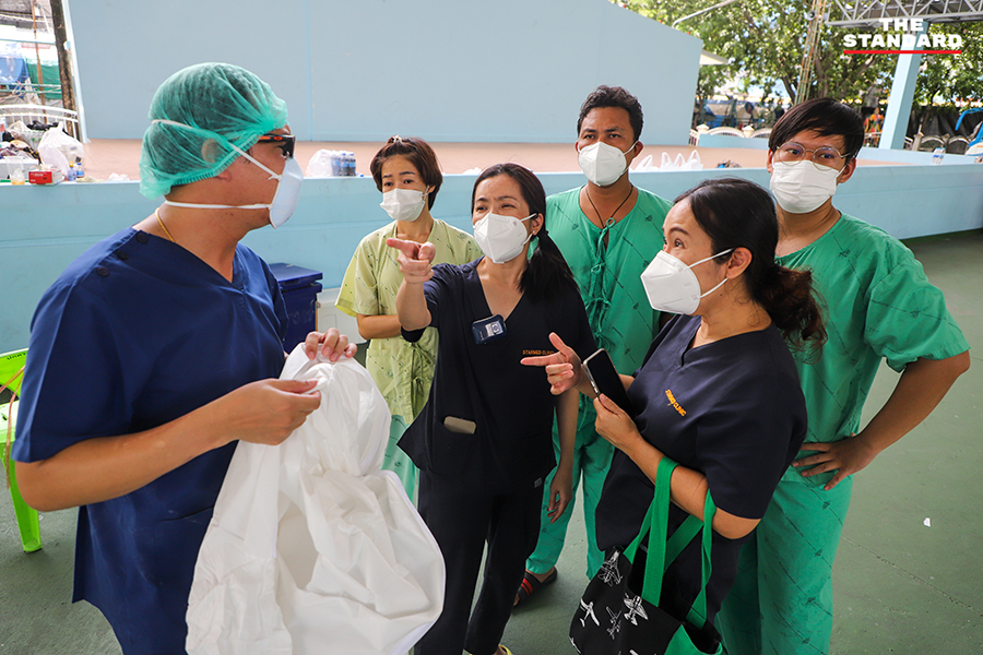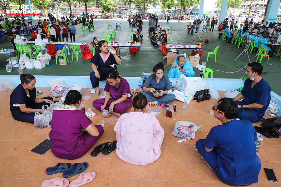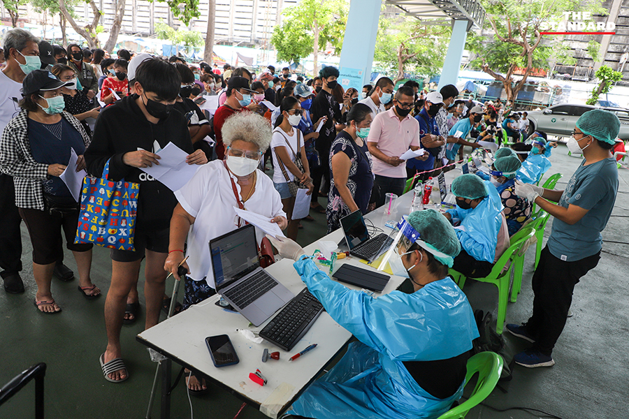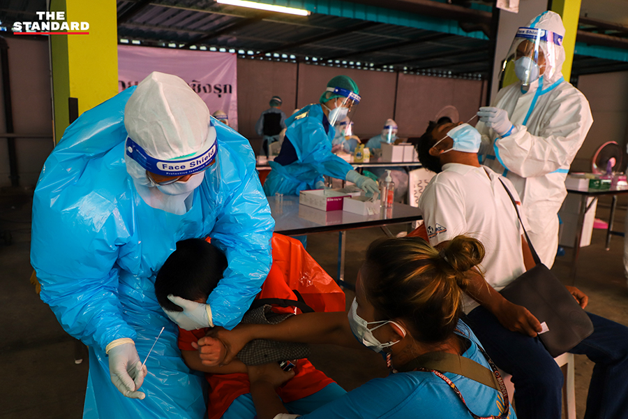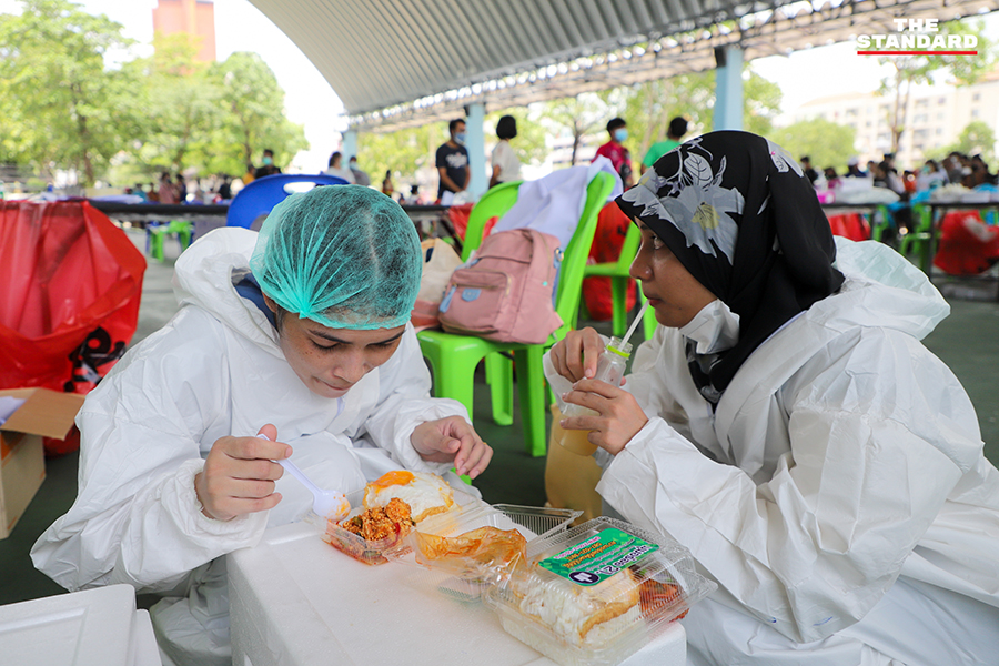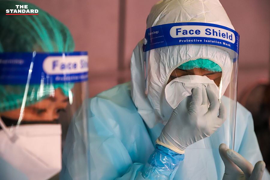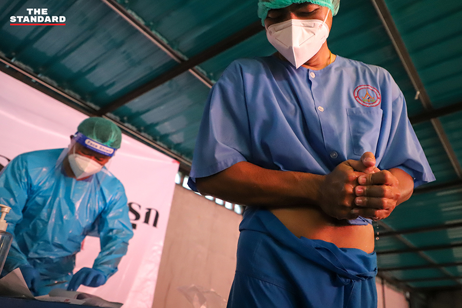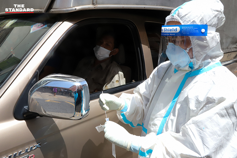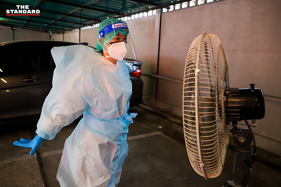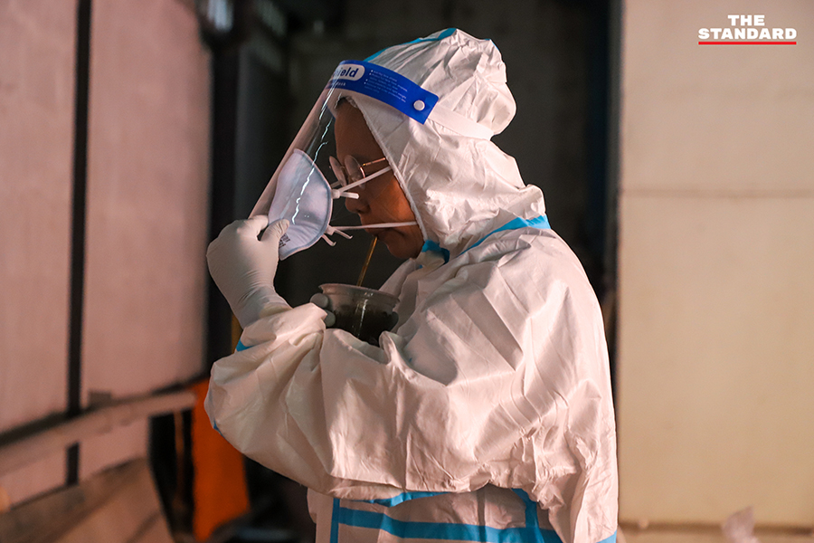 ขณะที่วันนี้ THE STANDARD ลงพื้นที่จุดตรวจย่านอินทามระ ซอย 9 บริเวณลานจอดรถใต้คอนโดมิเนียมแห่งหนึ่ง เพื่อให้บริการตรวจชุมชนอินทามระ 2, 4 และ 6 แขวงสามเสนใน เขตพญาไท โดยจุดนี้เป็นการทำงานของทีมสุราษฎร์ธานี