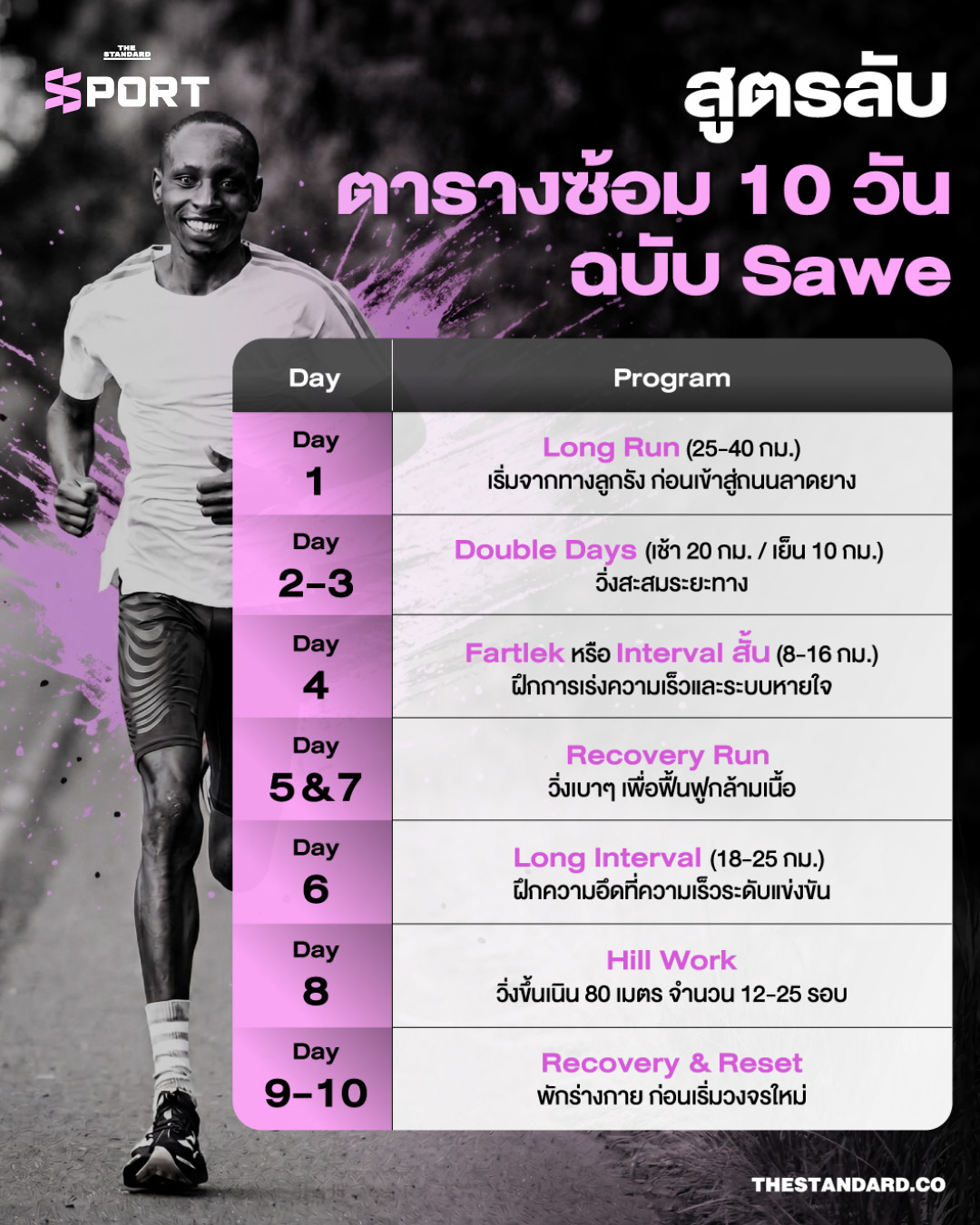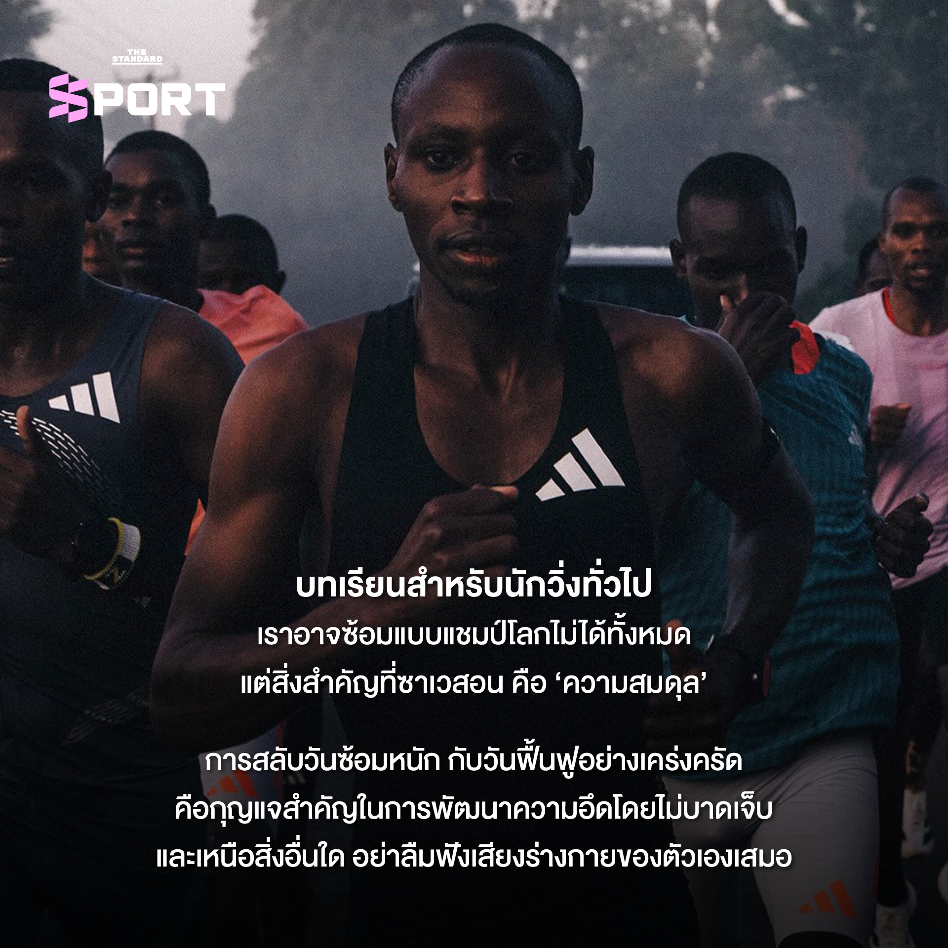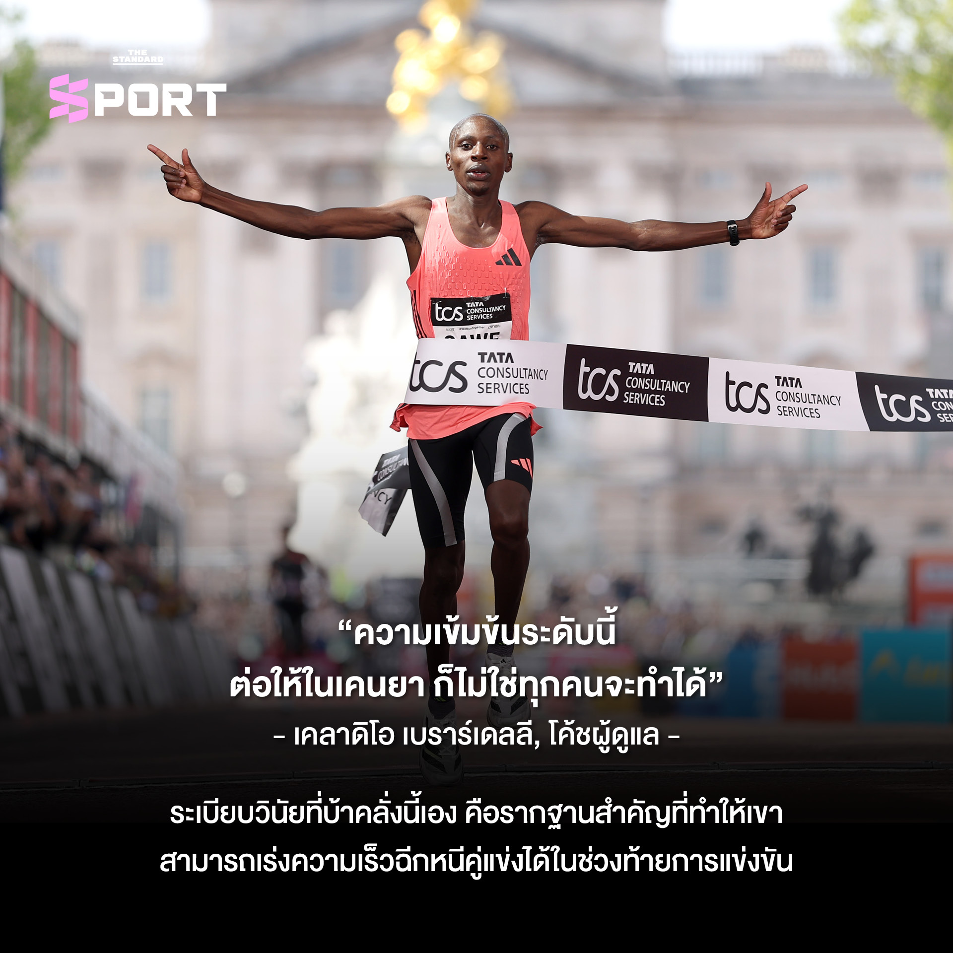 แต่มันคือผลลัพธ์ของการซ้อมหนักระดับ 200 กิโลเมตรต่อสัปดาห์ วินัยที่ทำซ้ำอย่างไม่ประนีประนอม โภชนาการที่แม่นยำ เทคโนโลยีของรองเท้าที่ถูกเลือกอย่างละเอียด และความเชื่อที่ไม่เคยสั่นคลอนว่า มนุษย์สามารถก้าวข้ามขีดจำกัดของตัวเองได้
