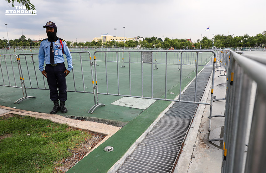ช่วงบ่ายวันนี้ ช่างภาพ THE STANDARD เดินทางผ่านสนามหลวง เป็นจังหวะที่ฝนตกลงมาพอดี จึงเก็บภาพสนามหลวงในปัจจุบัน ที่อาจจะถูกใช้เป็นพื้นที่ชุมนุมทางการเมืองอีกครั้ง ขณะที่เชื่อว่าหลายคนล้วนมีความทรงจำต่อสนามหลวงในประวัติศาสตร์และความรู้สึกที่อาจใกล้เคียงหรือแตกต่างกันออกไป แต่อย่างน้อยในหลายเรื่องราวเหล่านั้นอาจกล่าวได้ว่าภาพความทรงจำสนามหลวง ในฐานะพื้นที่ทางการเมือง น่าจะเป็นรูปธรรมเด่นชัดหนึ่งที่ไม่อาจปฏิเสธได้แน่นอน