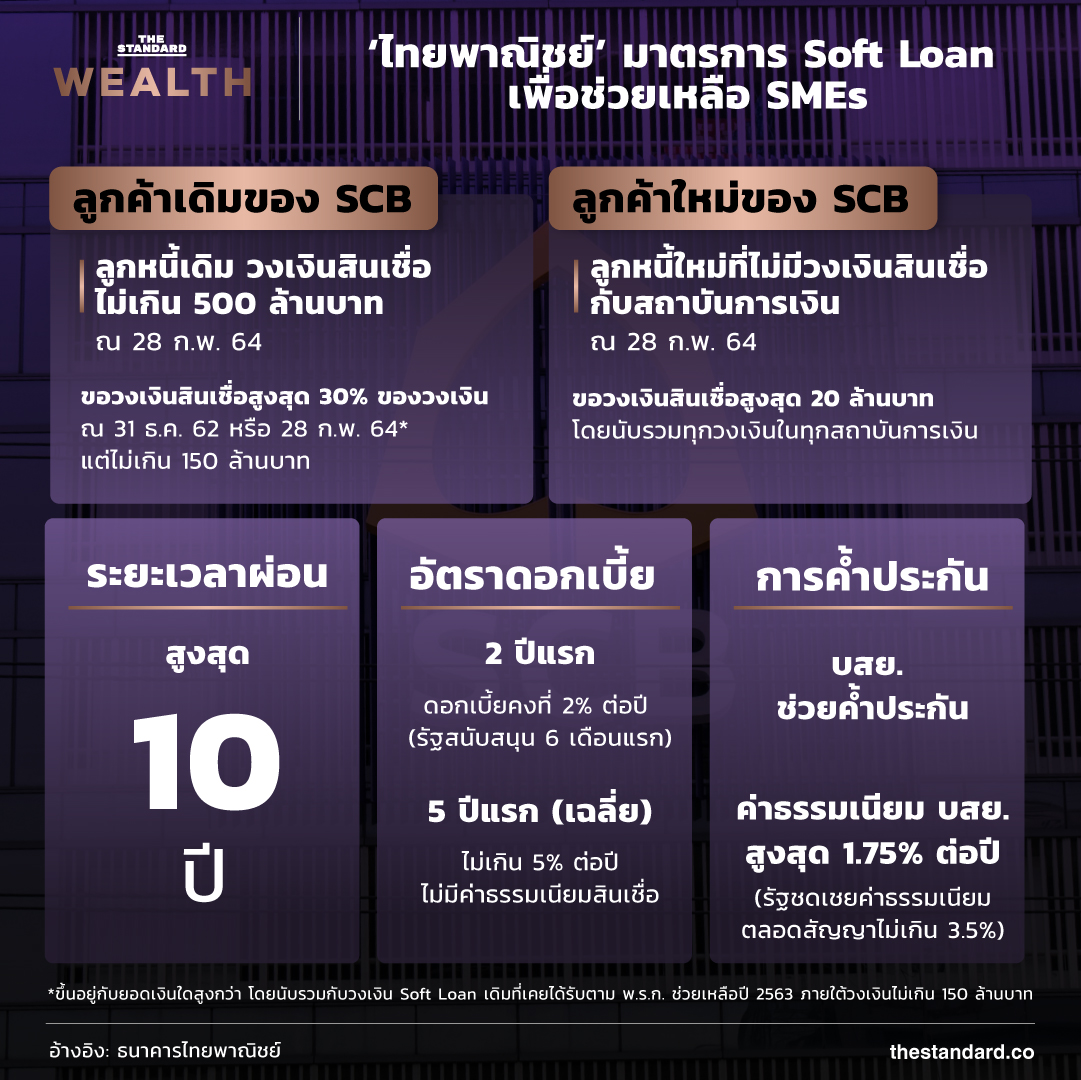 สำหรับมาตรการ Soft Loan ครั้งนี้ ทางธนาคารไทยพาณิชย์ยังเปิดกว้างให้ SMEs ทั้งลูกค้าปัจจุบันและลูกค้าใหม่สามารถเข้ามาขอสินเชื่อได้อย่างสะดวกขึ้น โดยมีคุณสมบัติดังนี้