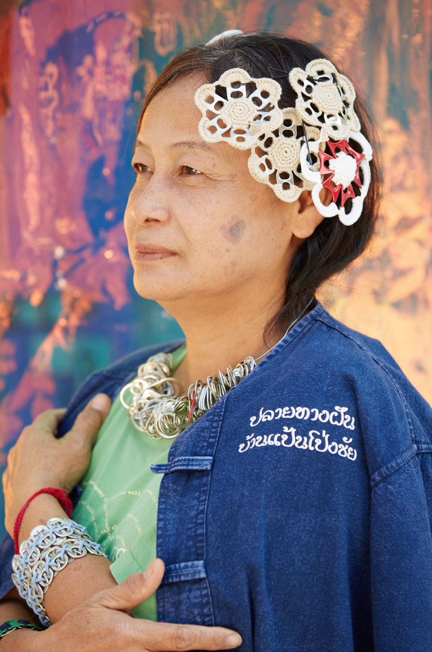 ตามด้วยป้าจินตนา กับฝีมืองานหัตถกรรมจากสิ่งของเหลือใช้และขยะ โดยการนำเศษวัสดุจากที่เปิดฝากระป๋องอะลูมิเนียมมาประดิษฐ์เป็นที่รองแก้วที่มีดีไซน์เป็นเอกลักษณ์