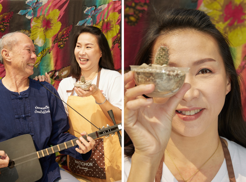 รวมถึงสองพ่อลูกสายศิลปินอย่าง พงษ์ศักดิ์ ถนอมจิตต์ นักดนตรีประจำหมู่บ้าน และทิพาพร ถนอมจิตต์ เจ้าของร้านกาแฟในหมู่บ้าน กับไอเดียสร้างสรรค์ที่นำเอาเศษวัสดุเหลือใช้ เช่น ฝาแก้วพลาสติกใช้แล้วมาเป็นกระถางปลูกต้นไม้สุดน่ารัก หรือการใช้ไม้ฝาบ้านเก่ามาสร้างสรรค์เป็นเครื่องดนตรีพื้นเมือง