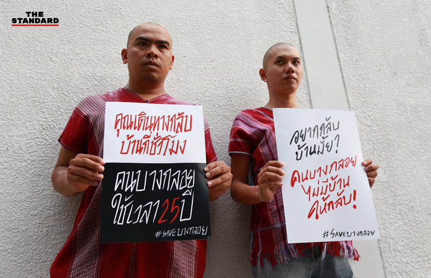 รวมทั้งยังมีการชูป้ายข้อความซึ่งเขียนว่า “คุณเดินทางกลับบ้านกี่ชั่วโมง คนบางกลอยใช้เวลา 25 ปี” และ “อยากกลับบ้านไหม คนบางกลอยไม่มีบ้านให้กลับ”