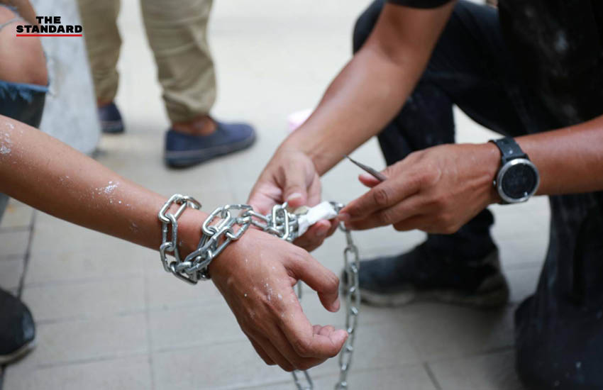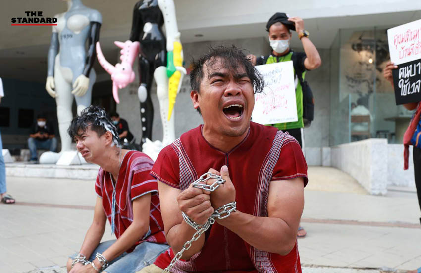 วันนี้ (12 มีนาคม) เมื่อเวลา 16.15 น. ที่สกายวอล์ก MBK กลุ่มภาคี #Saveบางกลอย นำโดย บอย-ธัชพงศ์ แกดำ แสดงกิจกรรมเชิญสัญลักษณ์ถึงการถูกกดขี่ข่มเหง โดยมีการจัดกิจกรรมเชิงสัญลักษณ์ด้วยการล่ามโซ่ชาวบ้าน เสมือนเป็นเชลย หลังจากนั้นได้เดินรอบสกายวอล์ก ก่อนลงมาที่ลานหน้าหอศิลปวัฒนธรรมแห่งกรุงเทพมหานคร ซึ่งแสดงให้เห็นถึงการถูกกดขี่ โดยผู้ถูกกระทำได้ร้องไห้ทั้งน้ำตา พร้อมกล่าวว่า “อยากกลับบ้าน พวกคุณพาเรากลับบ้านได้ไหม”