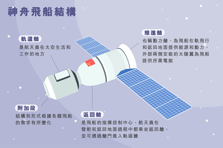 ยานอวกาศ ‘เสินโจว’ มีความหมายถึง เรือศักดิ์สิทธิ์ เป็นยานอเนกประสงค์ในโครงการ 921 ของจีน ลักษณะคล้ายยานโซยุซของรัสเซีย แต่มีขนาดใหญ่กว่า ออกแบบตามที่จีนลงได้นามในข้อตกลงกับรัสเซียในปี 1995 สำหรับการถ่ายโอนเทคโนโลยีโซยุซ มีความยาว 9.25 เมตร เส้นผ่านศูนย์กลาง 2.80 เมตร ปริมาตร 14 ลูกบาศก์เมตร มีโมดูลสามโมดูลที่สามารถแยกออกจากกันได้ คือโมดูลออร์บิทัลที่อยู่ด้านหน้า (轨道舱) โมดูลเดินทางกลับโลก (返回舱) ที่อยู่ตรงกลาง และโมดูลบริการที่อยู่ด้านท้าย (推进舱) สามารถใช้งานได้ทั้งแบบมีนักบินบังคับหรือไม่มีนักบินบังคับ