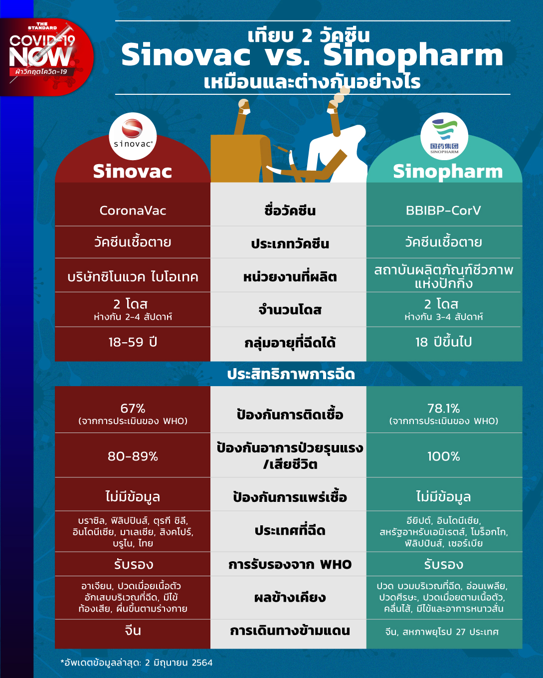 - ข้อดี-ข้อเสีย วัคซีน Sinovac vs. AstraZeneca ต่างกันอย่างไร : thestandard.co/pros-cons-sinovac-vs-astrazeneca-vaccine